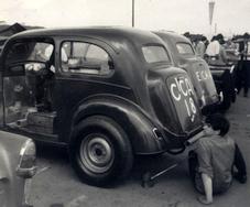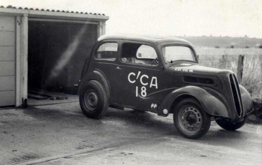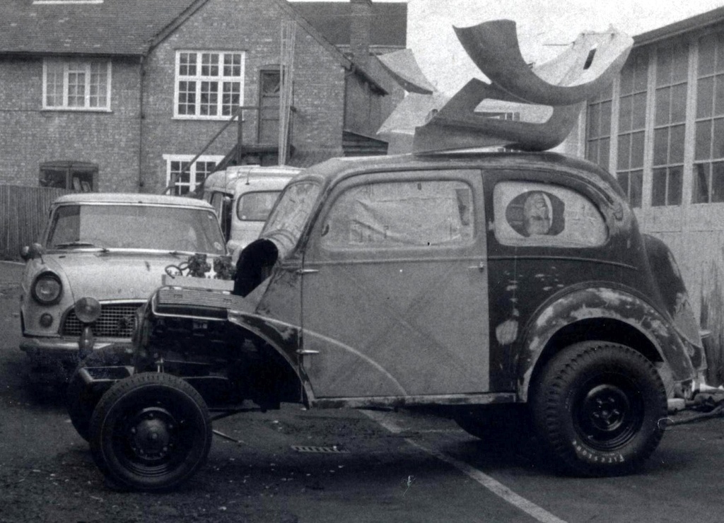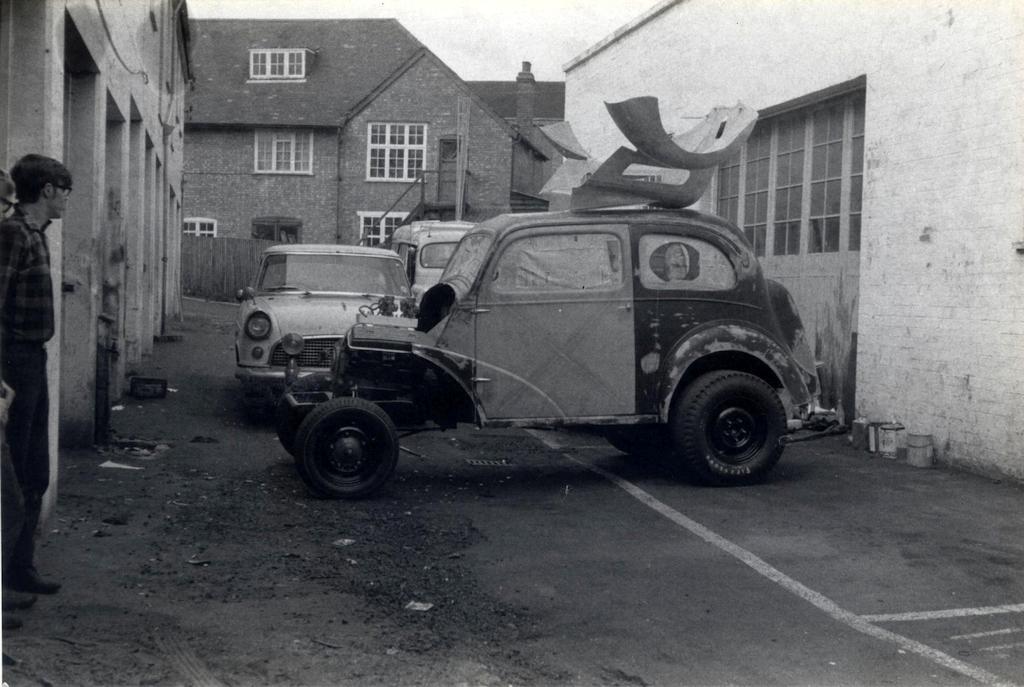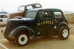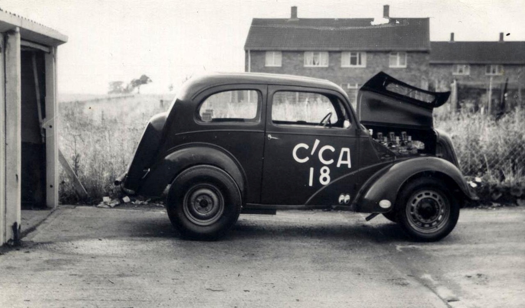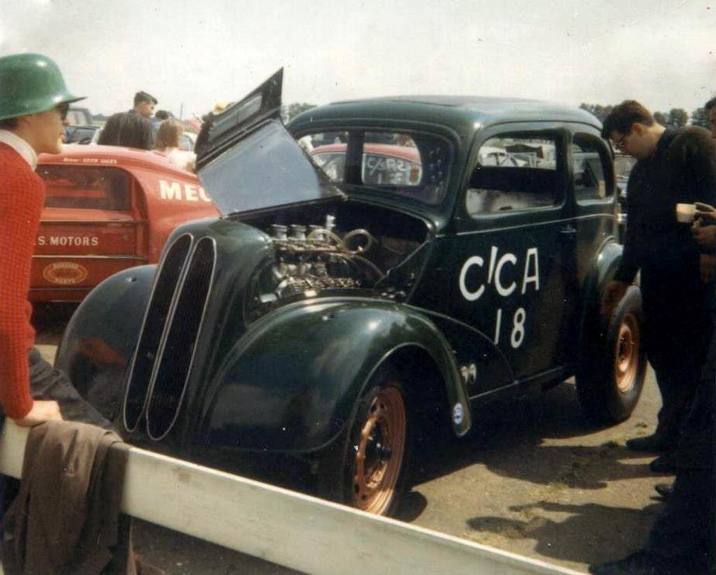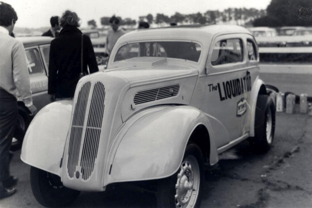 We debuted the car mid-season 1967 with Brian doing the driving, we ran at 3 meetings. The car had no name initially, only the race number C/CA18 on the doors and boot. With a respectable best time of 17.33 it was not too far off our rivals' time of two seconds quicker which had Jag engines or OHV V8s. For 1968 we replaced the Flathead with a 324ci Oldsmobile V8 and named the car 'The Mangler' after Danny Ongais’s Fuel dragster. We cut the rear wings to radius them so we could fit widened wheels, initially fitted with big street treaded rear tyres, then with treaded circuit racing wet tyres bought from Pete Atkins at Watford Motor Accessories. He got a deal from someone and they were only £12. We still used the Westminster axle and instead of narrowing it we widened the wheels inwards. The car sat slightly nose down by accident, although most people said it looked really mean. We had no electric power; everything was done manually by hand drills, files and hacksaws and was very cold in winter. We raced at eight meetings in 1968.