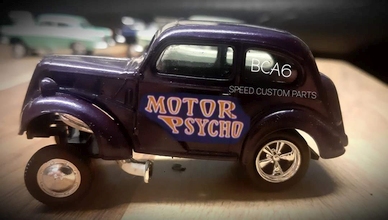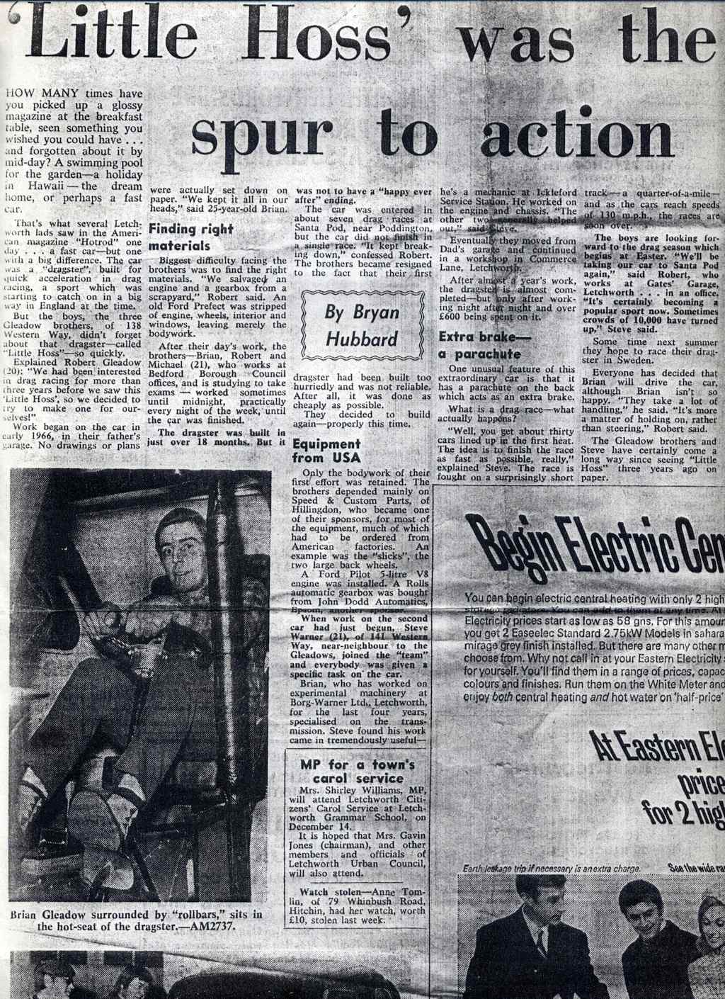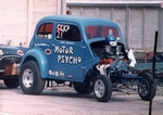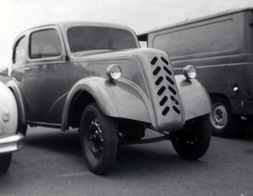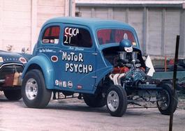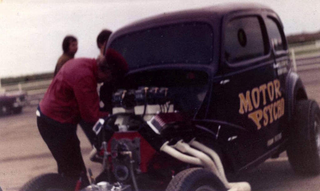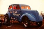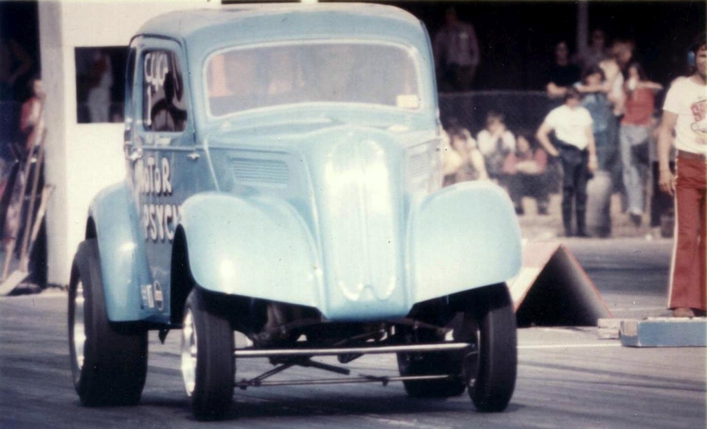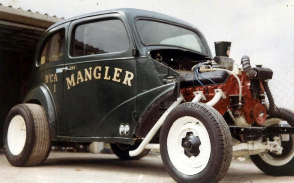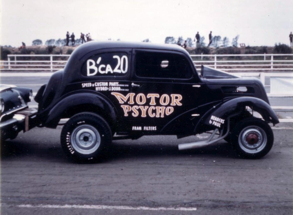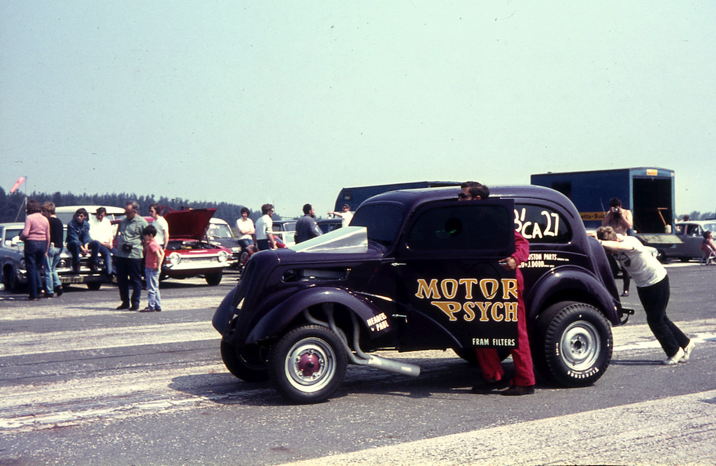 As told exclusively to Brian Mick and Bob Gleadow first got into drag racing seeing an early meet at RAF Chelveston, becoming mobile caterers for some early British events in the sport. Their first car was a Ford Pop which started with a flathead Ford engine, later upgraded to an Olds V8 and named Mangler. Learning more about mechanics and obtaining often hard to get parts, the brothers upgraded the car comprehensively including a strong roll cage and fibreglass body parts with new engine pieces. In 1970 the car was renamed Motor Psycho and was run until the end of 1973, with a new engine in that year, before selling it to Al O'Connor as the original Al's Gasser.