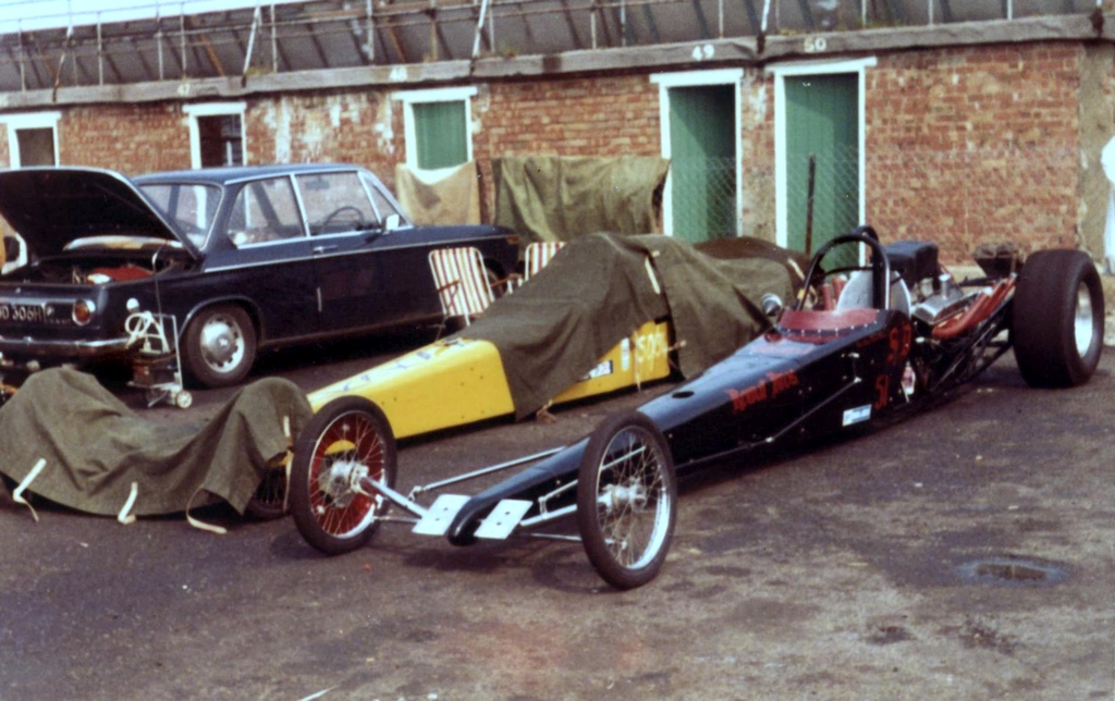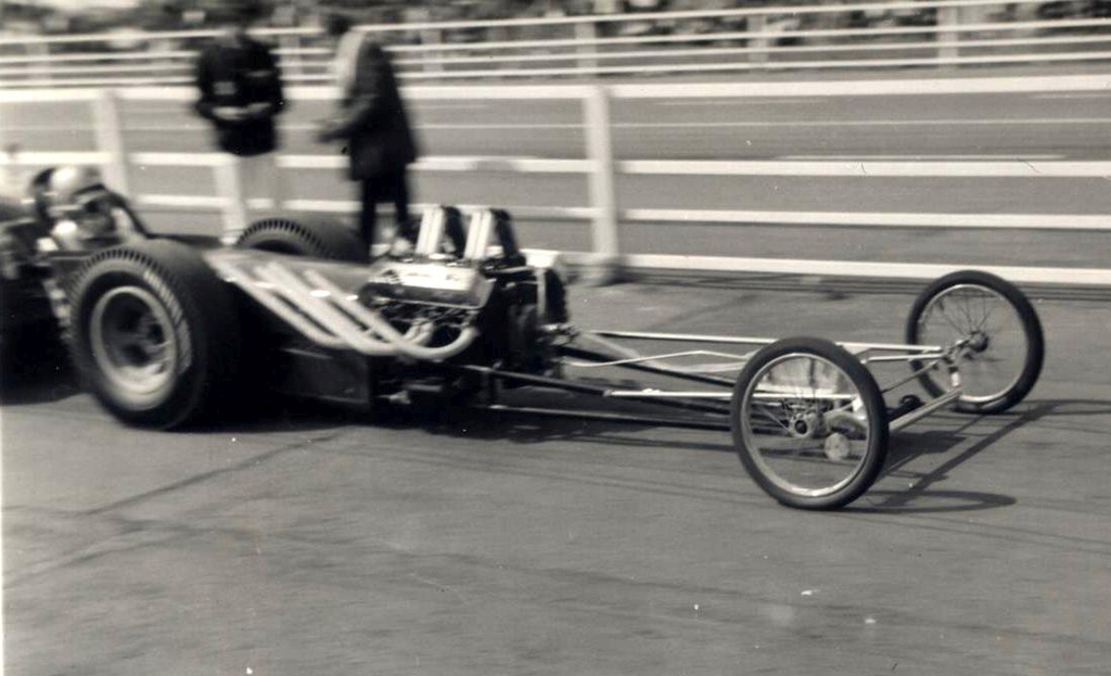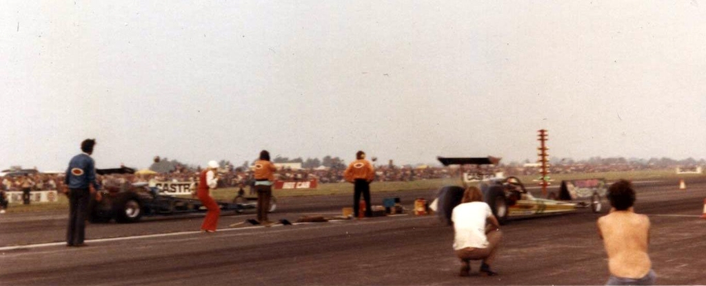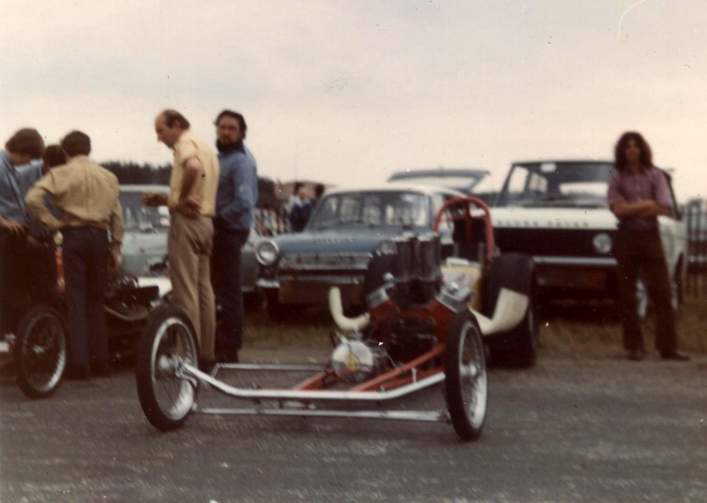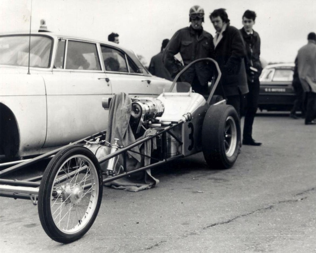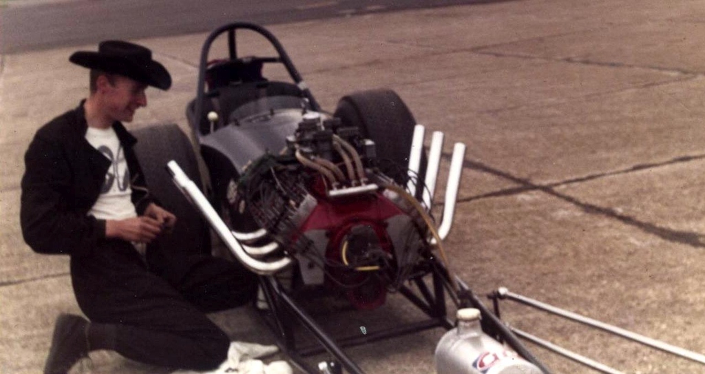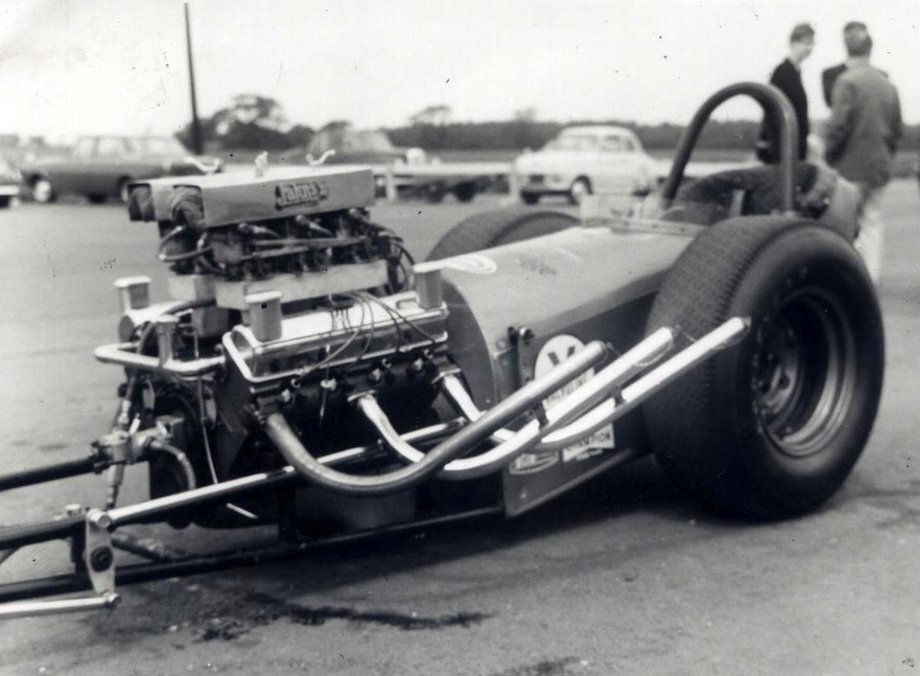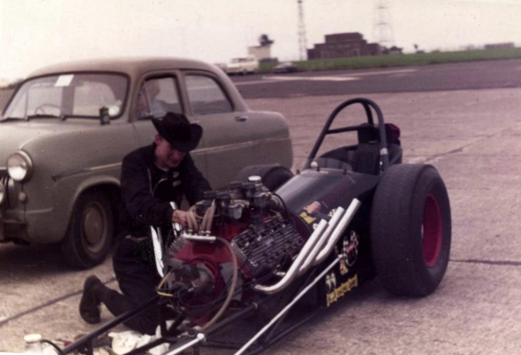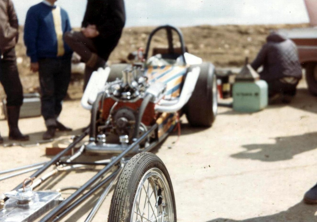 Brian stopped driving early in 1971 and did more of the wrenching and push car driving. He was getting married in 1972 and his intended wasn't too keen on him continuing to drive. At the end of the season, he left the team altogether to crew on Ken Coopers flathead dragster but became involved again in 1979 working with the others on the ‘Vintage Tin’ slingshot. He drove Motor Psycho a few times at the start of 1971 and on one of his last drives at Blackbushe Brian recalled where their dad had done the catering back in 1964.