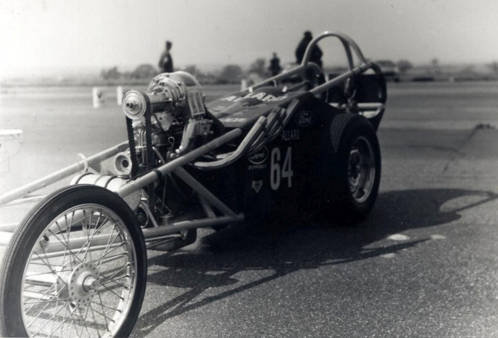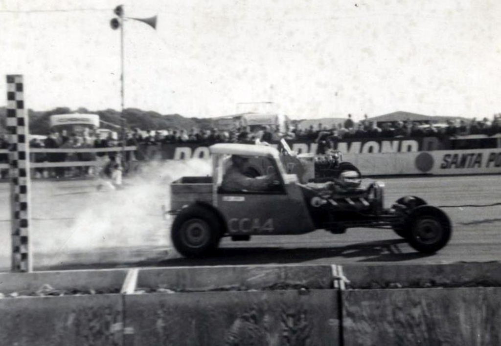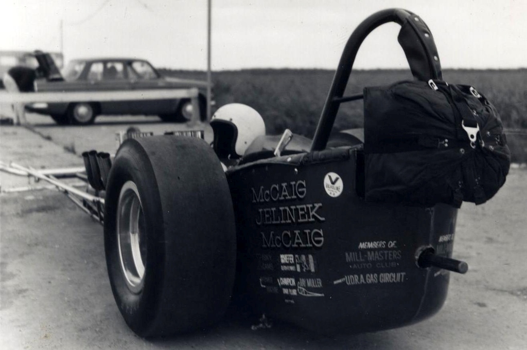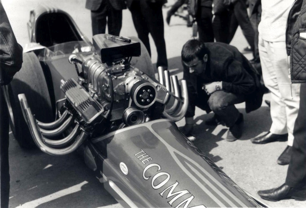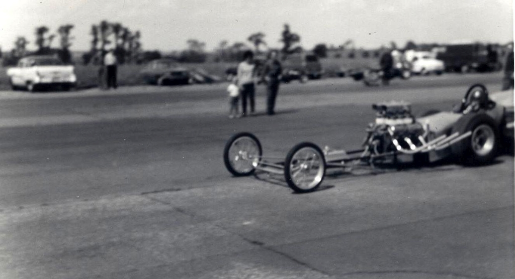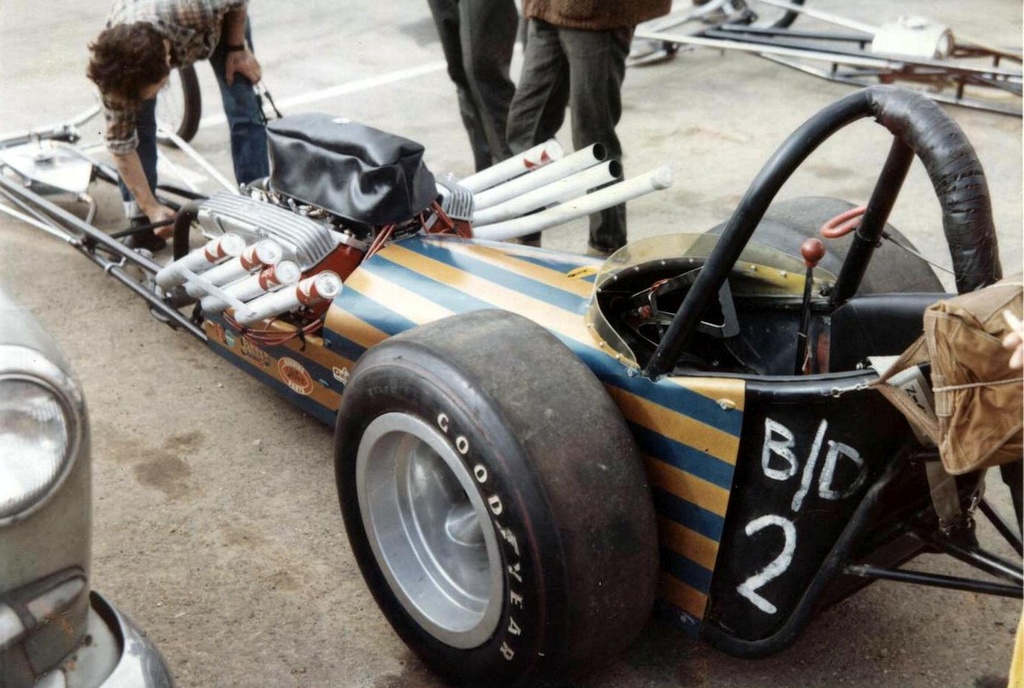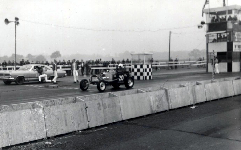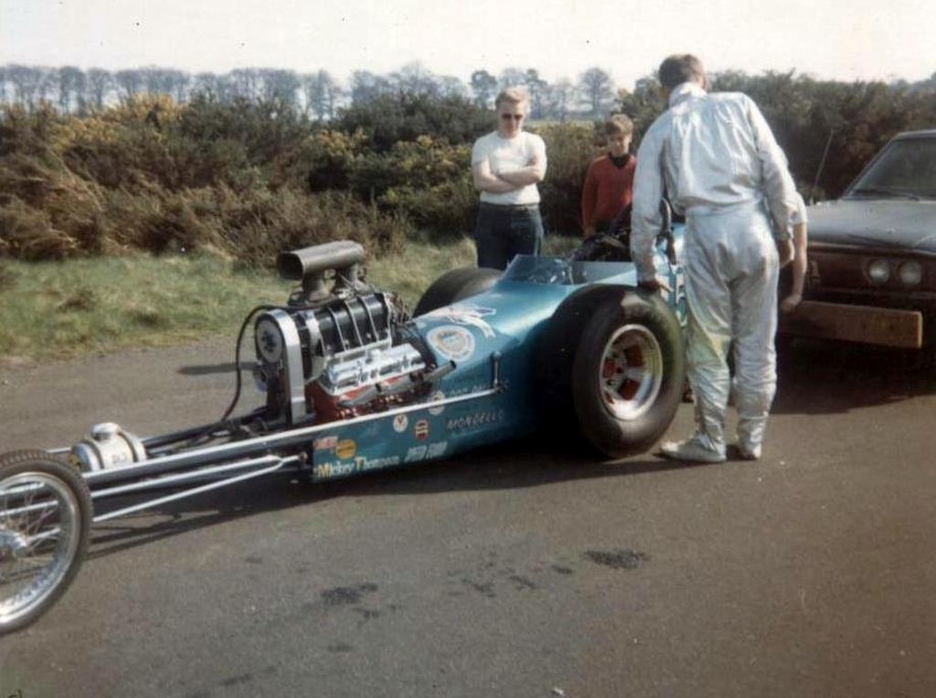 Brian stopped driving early in 1971 and did more of the wrenching and push car driving. He was getting married in 1972 and his intended wasn't too keen on him continuing to drive. At the end of the season, he left the team altogether to crew on Ken Coopers flathead dragster but became involved again in 1979 working with the others on the ‘Vintage Tin’ slingshot. He drove Motor Psycho a few times at the start of 1971 and on one of his last drives at Blackbushe Brian recalled where their dad had done the catering back in 1964.