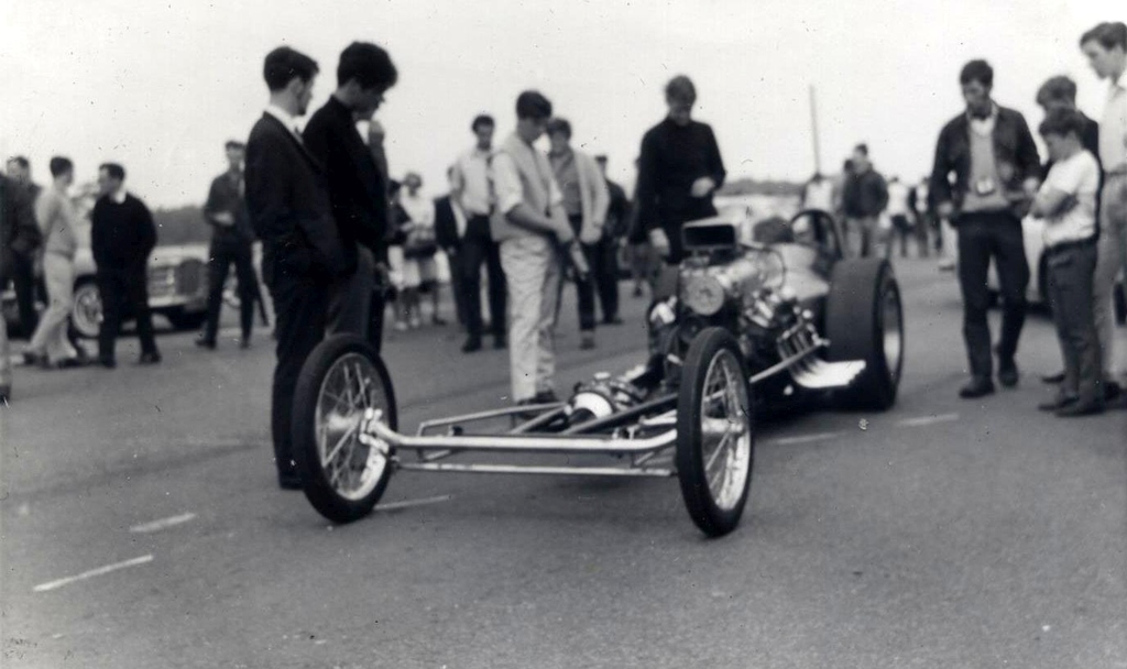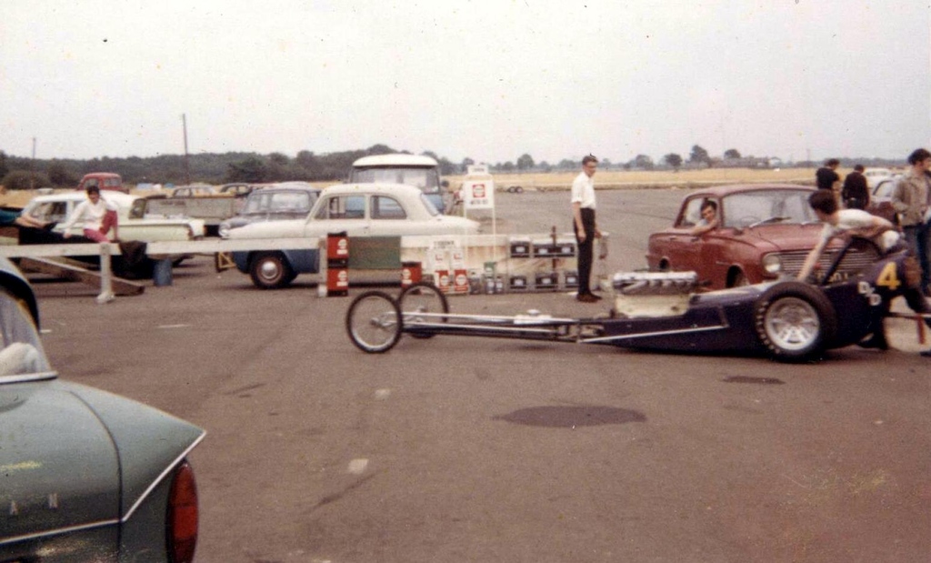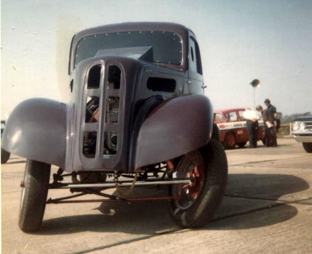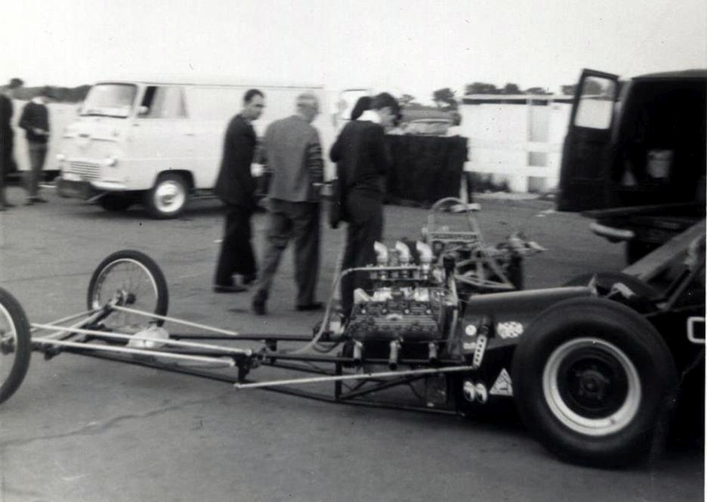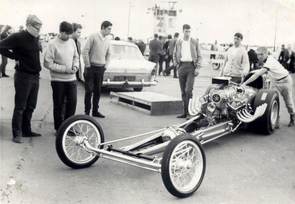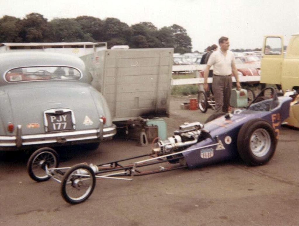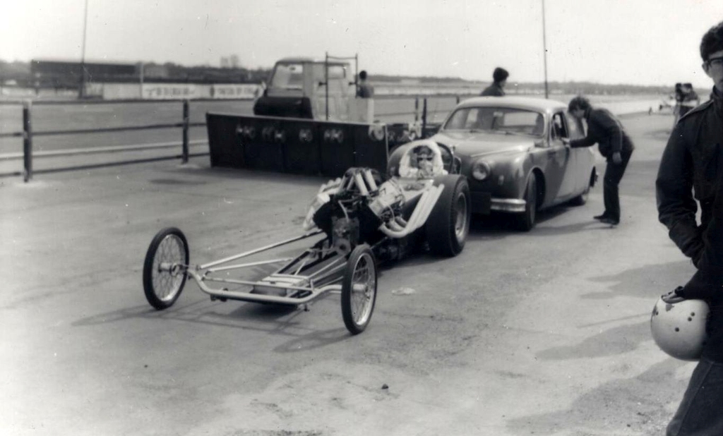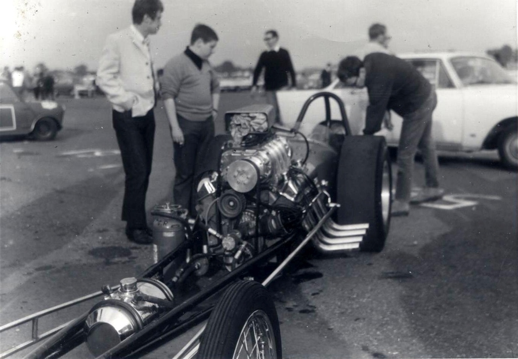 Brian begins: I’m 77, born 8th May 1944 in Letchworth going to Grange junior school, then Norton Road secondary School. Leaving at 15 with zero qualification I became an apprentice motor mechanic qualifying in 1965. I worked as a trainee on BMC cars then going onto Borg Warner working on experimental automatic transmissions for nine years. I first saw drag racing at RAF Chelveston, one of the six rounds of the 1964 Dragfest and was totally hooked after the experience. It all started for me when Dad brought this business called Beano bars which was a Trojan van selling Hotdogs, teas and coffee. I got co-opted into driving the van to some of the Karting and Motorcycle events. He got to speak with Gerry Belton of the BDRA, one of two clubs organising drag racing, the other was the BHRA. This was how our father started mobile catering for the practice day events at Graveley and where I met Ken Cooper in 1965 with his Flathead powered dragster with a full width rear axle, being so keen to get out racing and not narrowing it before. For me it was the cars of George Montgomery and K S Pitman I remember seeing at Chelveston. These started off the building of Altereds in the UK, everyone thinking they could get hold of old cars, stuff in a V8 engine and go out and run 9 or 10 seconds like the Americans, whereas it took several years before these performances were reached.