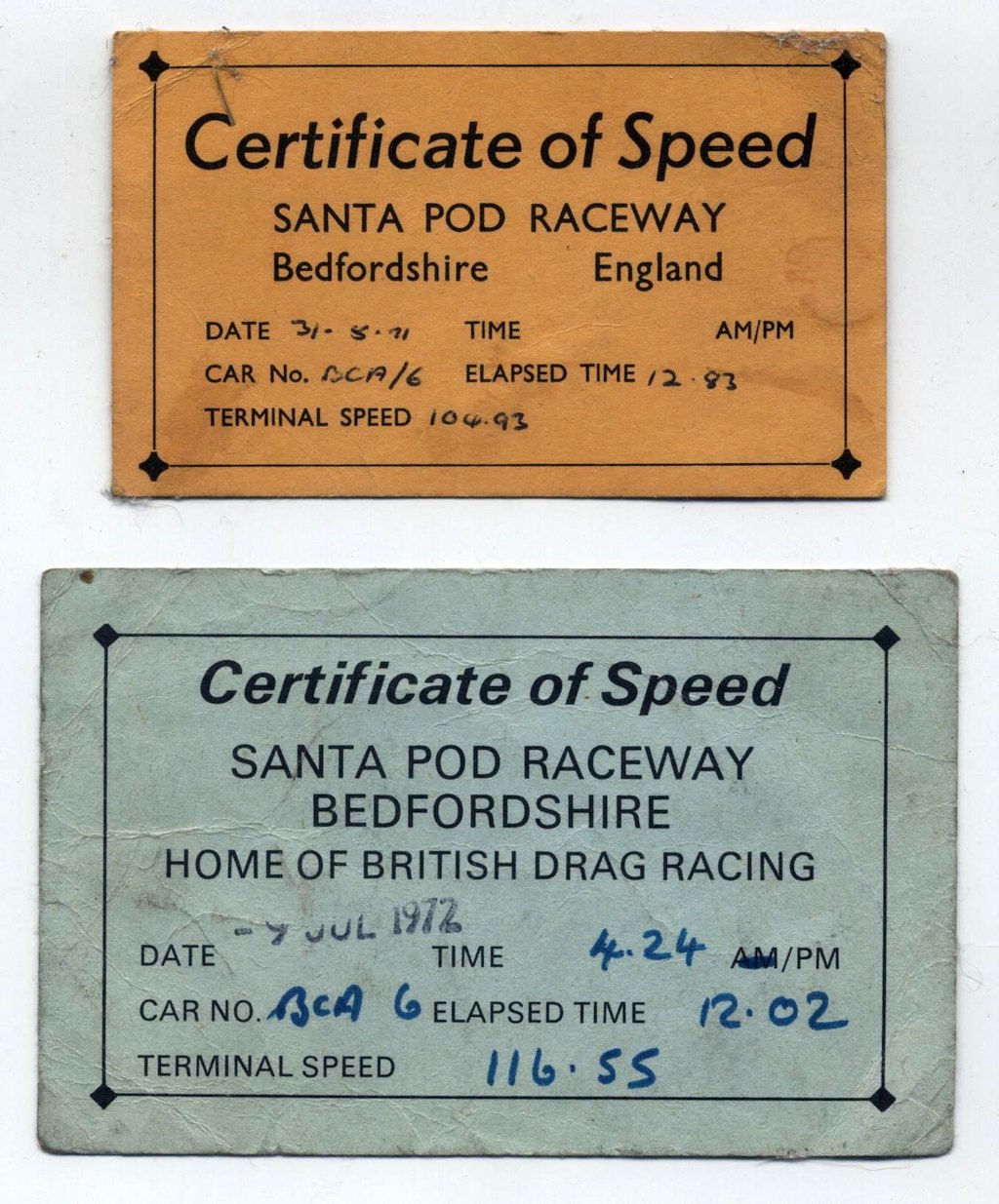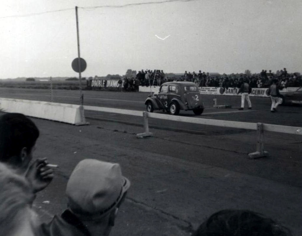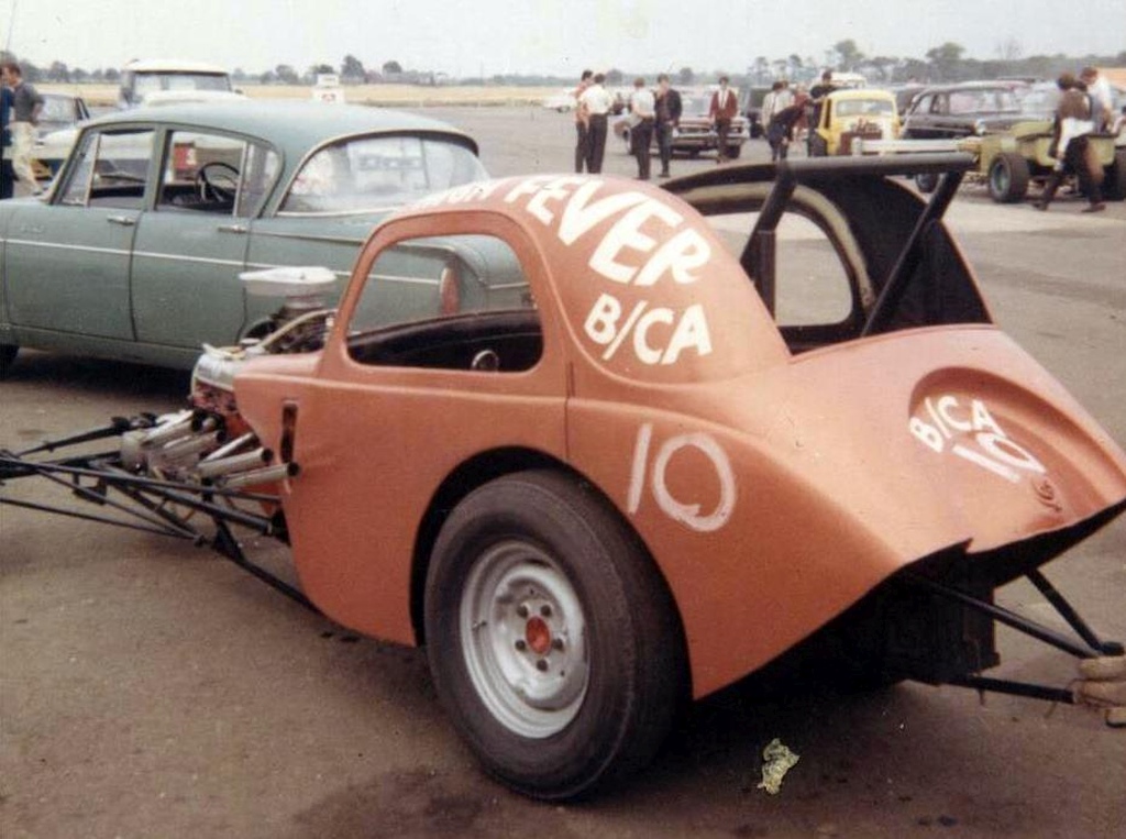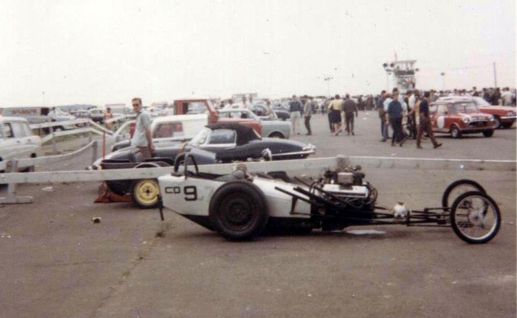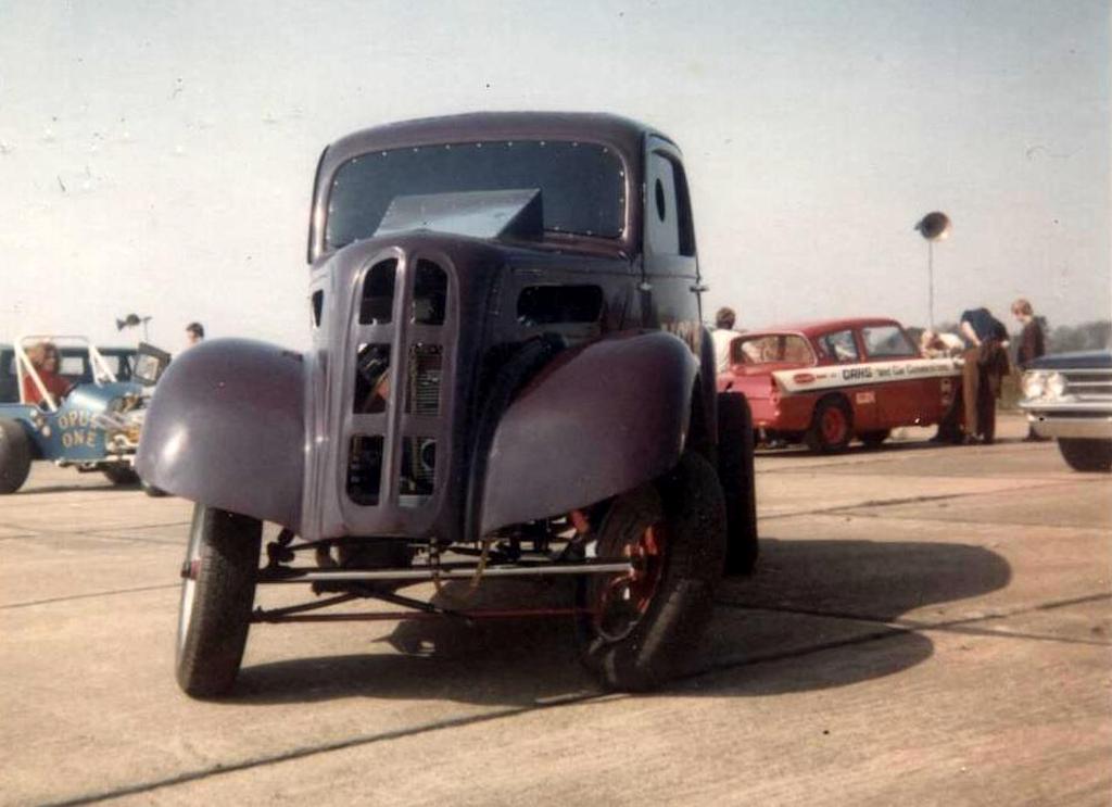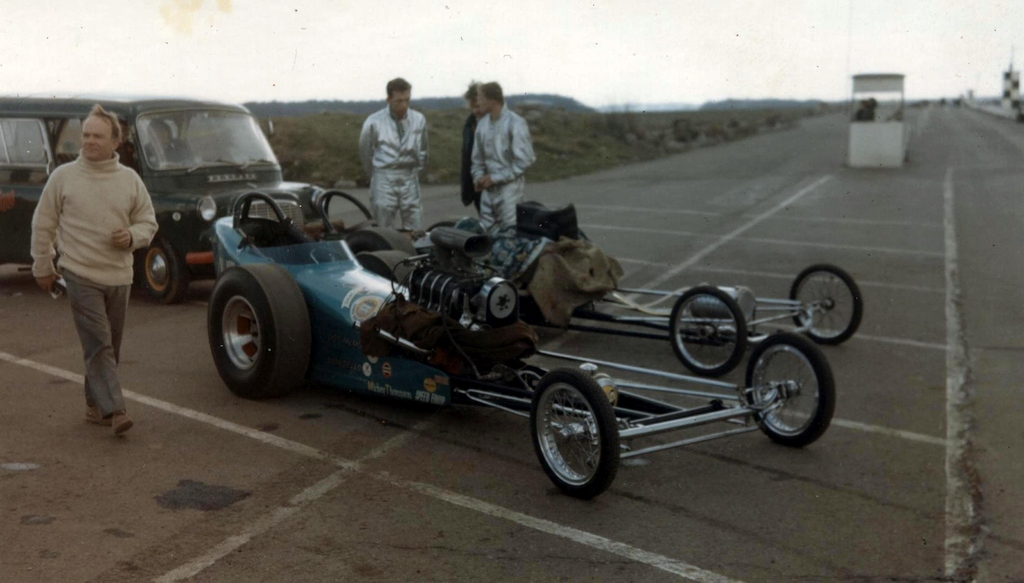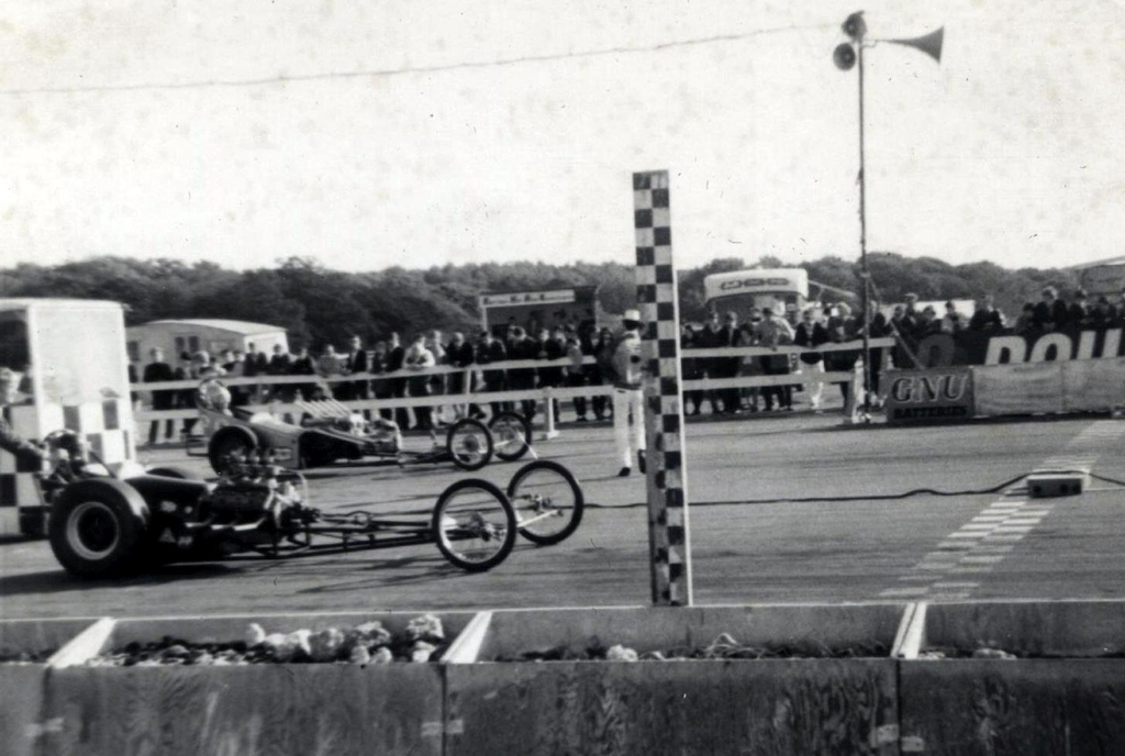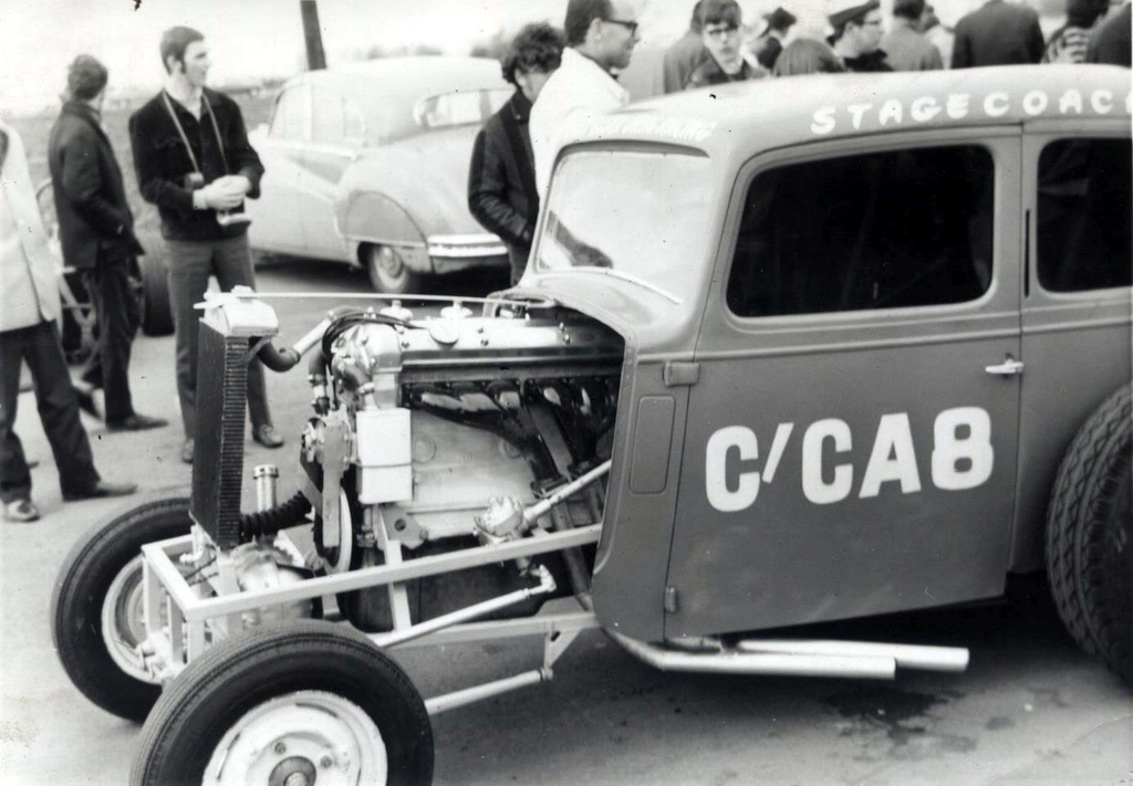 Brian begins: I’m 77, born 8th May 1944 in Letchworth going to Grange junior school, then Norton Road secondary School. Leaving at 15 with zero qualification I became an apprentice motor mechanic qualifying in 1965. I worked as a trainee on BMC cars then going onto Borg Warner working on experimental automatic transmissions for nine years. I first saw drag racing at RAF Chelveston, one of the six rounds of the 1964 Dragfest and was totally hooked after the experience. It all started for me when Dad brought this business called Beano bars which was a Trojan van selling Hotdogs, teas and coffee. I got co-opted into driving the van to some of the Karting and Motorcycle events. He got to speak with Gerry Belton of the BDRA, one of two clubs organising drag racing, the other was the BHRA. This was how our father started mobile catering for the practice day events at Graveley and where I met Ken Cooper in 1965 with his Flathead powered dragster with a full width rear axle, being so keen to get out racing and not narrowing it before. For me it was the cars of George Montgomery and K S Pitman I remember seeing at Chelveston. These started off the building of Altereds in the UK, everyone thinking they could get hold of old cars, stuff in a V8 engine and go out and run 9 or 10 seconds like the Americans, whereas it took several years before these performances were reached.