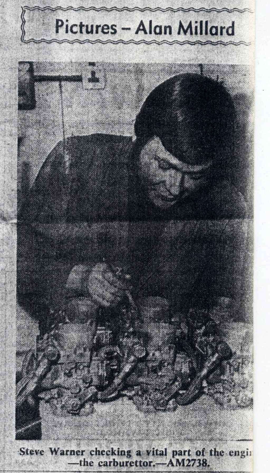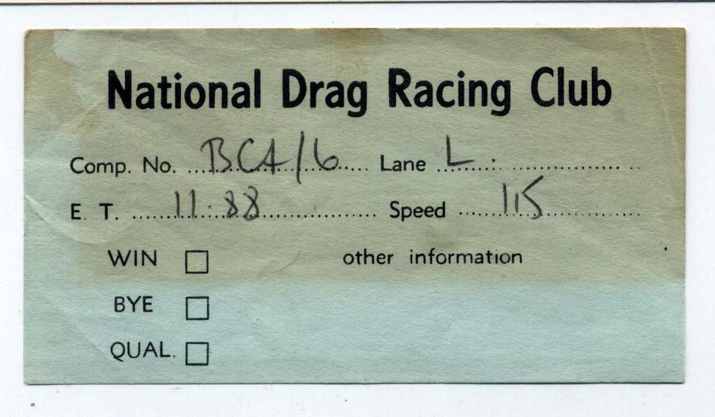 During 1971 Steve Warner started driving the car. He took to driving straight away, being fearless, enjoying the excitement and challenge of driving, he clocked a best of 12.83/104. Unfortunately, he liked his drink and after being successful at an event, he and Bernie Couper, a colleague of Brian's at the garage where he worked, went to the pub in Steve’s 105E Ford van and after four or five pints drove home, was stopped by the police and was over the limit. Brian received a call, could he go pick them up. Steve lost his driving license which meant he couldn't hold an MSA competition license so could no longer drive the car, we were all so disappointed. We’d had a successful run in 1971 entering five meetings and losing only to Colin Mullen’s Invader at the July International meeting at Santa Pod and to Dennis Stone in the final of Senior Competition at Blackbushe in August.