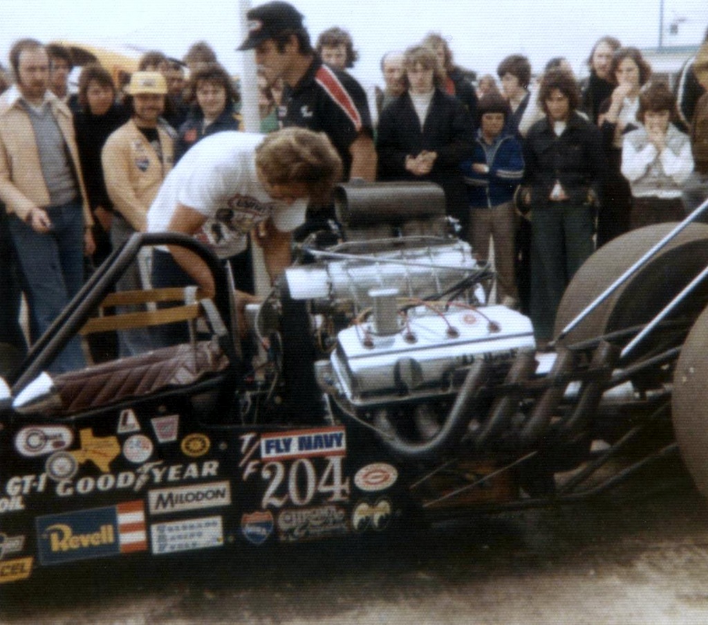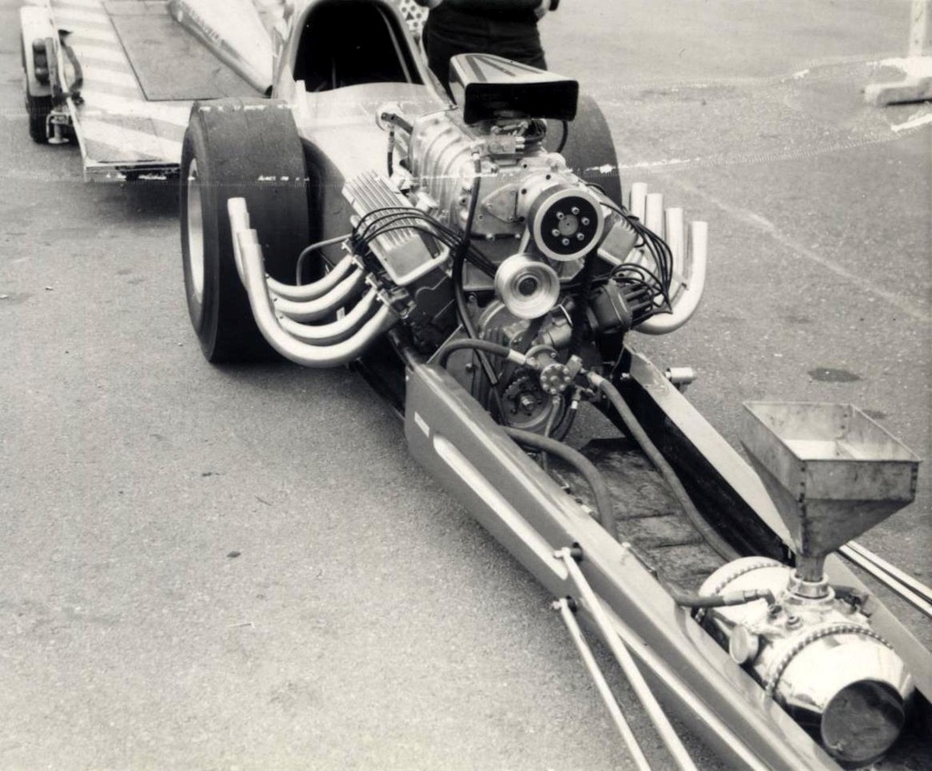 During this time Mick hung around Clive Skilton’s Top Fuel car with Don Beadle and during the evening used to pop round to the workshop in Hitchin, Herts, where the car was based to see Don working on it. He remembers that once the car wasn’t finished until about 8 pm on Saturday night to run at Fulbeck the day after. Don was too tired to drive the tow van and box trailer so Mick had to drive it, arriving at Fulbeck at about midnight. After the race meeting on the Sunday, Clive was generous enough to buy the whole crew a meal on the way back and Mick got a lift in Clive’s Mercedes instead of the van! At this time Mick was also on the NDRC Committee so had meetings to attend in the evenings – a hectic time! In 1973 Mick ran the car solo with help from a school friend, Paul Ross and Bob sometimes came along. Inflation was going mad at this time and Mick's trade union negotiated a pay increase. Due to this he ended up with a huge amount in back pay, enough to buy a Traco 302 Chevrolet Formula 5000 engine from America through the Beadle brothers and a dual Holley Cross-Ram inlet manifold from Cliff Jones 'Opus One'. He also replaced the steel wheels with a shiny set of slot mags from Woolfrace and fitted a new one-piece fiberglass front end from Pat Cuss. We had sponsorship from Castrol of £500, which was a good deal and a lot of money back then which actually covered the cost of the engine. We never really got it fully sorted and had issues with running the right spark plugs apart from at one practice meeting where it really took off but no time was given. After racing at five meetings Mick decided he had spent enough money on racing and wanted to see American drag racing, by going on the NDRC trip to the Supernationals and the Manufacturers Funny Car Meeting at Orange County so sold the car to Al O'Connor at the end of 1973 as a going concern. Al debuted the car in 1974 with new paint and new name 'Al's Gasser'