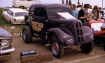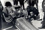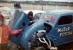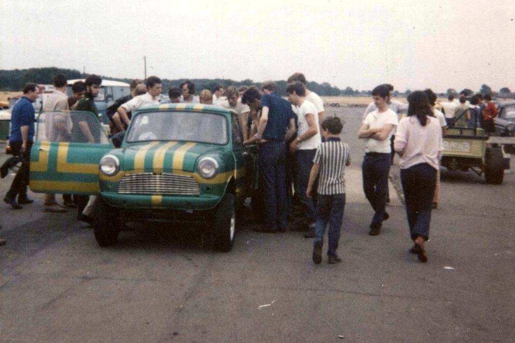 In 1970 Steve Warner joined the team. He was a very capable mechanic and fabricator being a Ford trained mechanic and working at the local Ford dealers Gates where Bob also worked. We changed the name to 'Motor Psycho' after Bob Dylan's song 'Motorpsycho Nightmare'. Utility Paint and Panel of Stotfield, Bedfordshire resprayed it Ford Aubergine while John Collier did the lettering and it was finished off with dark green perspex windows. We debuted it at Martlesham Heath in May 1970 staying in the British Bulldog pub in Ipswich. On the Saturday we couldn't start the engine and discovered the timing was 180 degrees out but it was soon sorted. Alan Wigmore of the NDRC asked us to put posters all around the sides of our push car and to drive round Ipswich to promote the event. We did this for about 2 hours using a lot of petrol. On Sunday we found a cracked cylinder head and had to withdraw from the race which was very disappointing. We'd previously had the cylinder heads milled to raise the compression ratio and using flat top pistons we believed it was at 12-1. Apart from raising the compression ratio, the theory was that with using flat top pistons the fuel mixture was a much more even flow. We had just a little too much milled off the cylinder head which caused the problem. There was an American base nearby and a lot of service men came to the meet, asking us why we were not racing but getting some very nice comments from them on the appearance of the car.