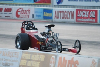 As told exclusively to Introduction: Mick got back into drag racing, quickly contacting friends to obtain a chassis and drivetrain for a slingshot dragster, running it in Wild Bunch as Jurassic Parts. It was succeeded by a new build chassis, Jurassic Parts 2, which has run into the eights with a small tip of the can. As Mick's retirement project, we look forward to seeing it run in 2022. After deciding to return to drag racing, the question was what type of car to build; altered; dragster or door slammer (nah!) So I went to Santa Pod to catch up on racing and it was clear that the sport had changed a lot, in particular the build quality of bracket cars and the safety standards were much better- long overdue. I also felt at home straightaway and people were chatty, I felt like I was being welcomed back, which was lovely. I've always thought that the dragster is the ultimate quarter mile car, with maximum bang per buck, so a dragster it was! I liked what I had seen of Wild Bunch as a category where the racing was affordable and with plenty of track time, so what else to do but go to see Roy Wilding! Of course when I got there Roy had a front engined dragster chassis in the rafters which he would sell me, deal done! Things had changed so much that for the rear end, before it would have been Austin Westminster or Sherpa now its 9" Ford; £2K and then some, but it all makes sense, safety wise and reliability. Initially I thought about building a Flathead Ford but that was so expensive that I decided on a small block Chevy, which I had run in Motor Psycho. It really is a powerful, easy to work on motor and pretty cheap as well; you can get parts from the States in a week or so or even over here. As I was still working then, time building the car was a bit restricted so it was evenings and weekends but that was OK because I could take my time and spread the cost. So from about 2007 I started building it up, bought a Powerglide from John Munday, a Chevy 350 from Mick Pusey. Roy Wilding was so helpful, he mounted the rear end, engine and gear box mounts and generally pointed me in the right direction, I needed that because everything had changed! My brother Bob also helped out with some Chevy bits from when they ran a blown small block in a T bucket.