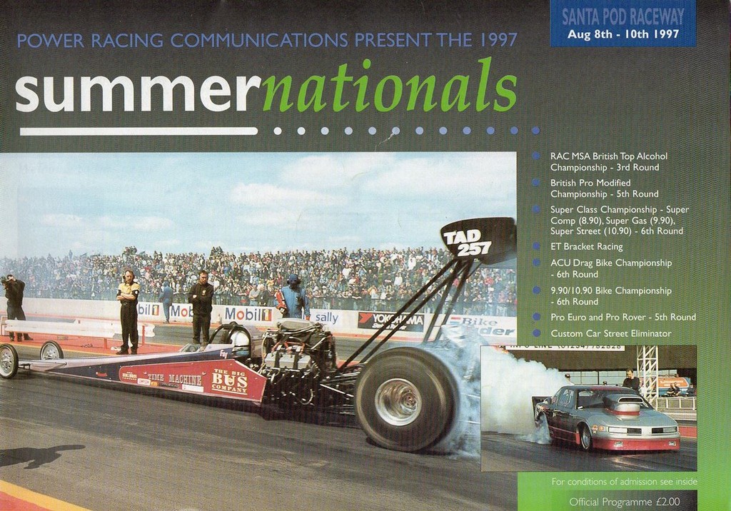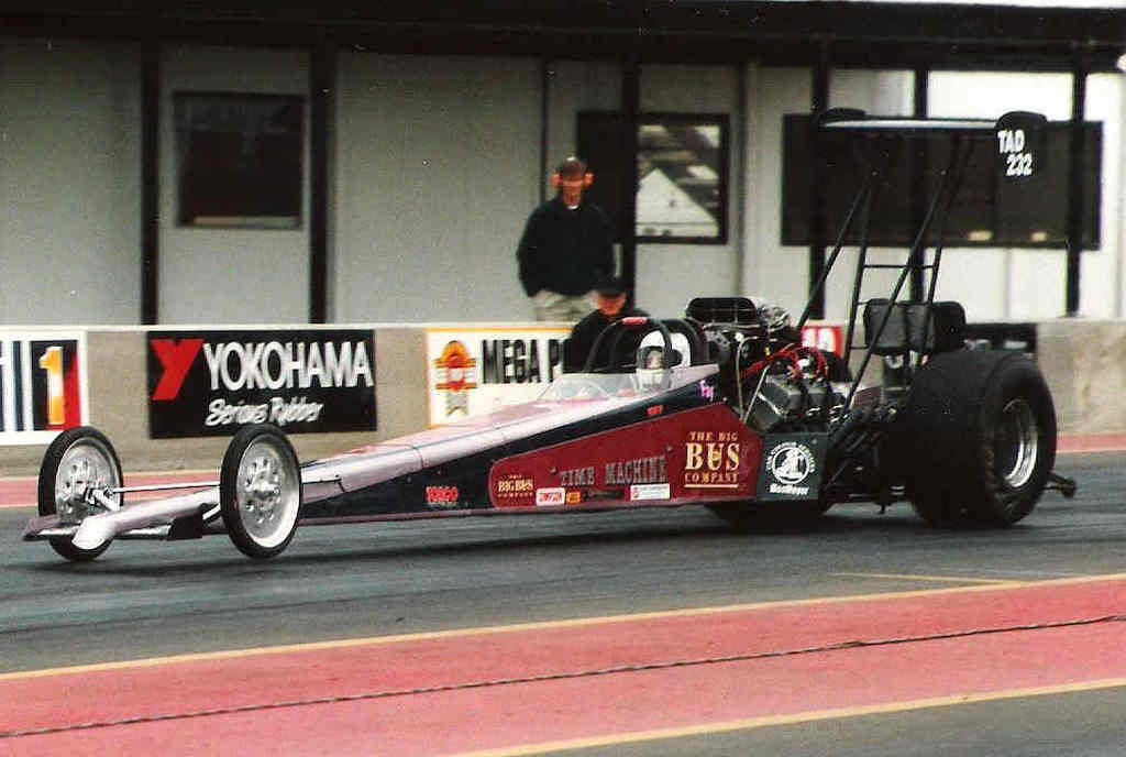 Time Machine 5 For the 1997 season as Mick had stepped away from drag racing, long time friend and Super Pro racer Fay Fischer came on-board to drive the TAD, bringing with her sponsorship from The Big Bus Company, whose sight-seeing buses could be seen all over London. Fay spent the season getting accustomed to driving a blown alcohol car with a clutch, running a best of 6.47@210mph.