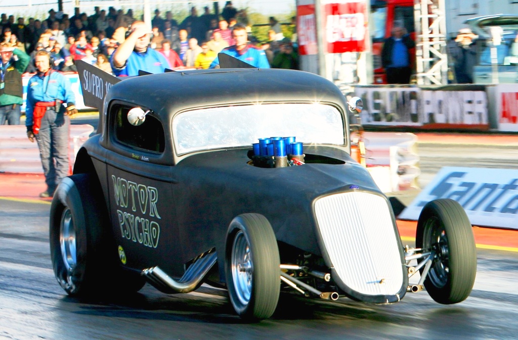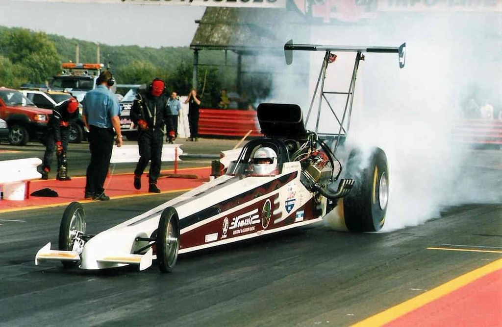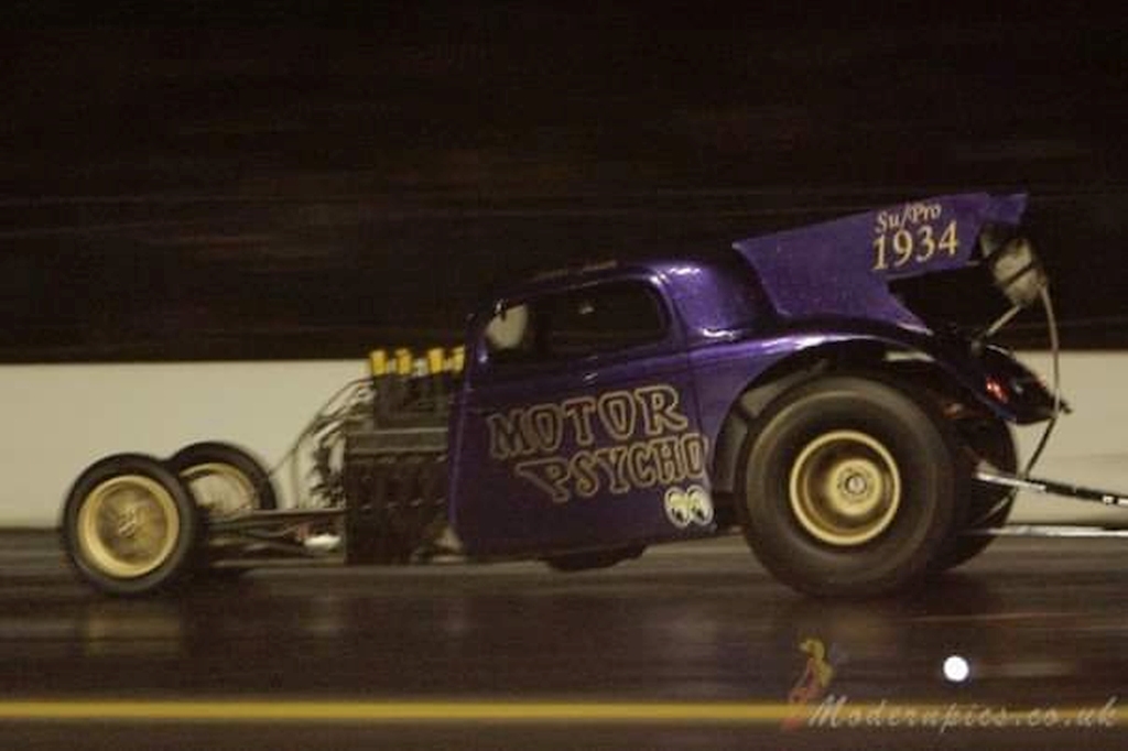 2002 was to be my last season in junior dragster, the highlights being a few more runner up finishes, a number 1 qualifier at the Summer Nationals and another trip to Hockenheim with Steve, and this time with Joe Bond as well. No drama on the journey this year, however, on the Wednesday night Tom Watts who had also come with us was sleep walking, fell and landed knee first on my thumb crushing it against the floor. After a trip to the hospital and having Wolf Man Jack's German brother rip the split nail off we headed out to the local water park, apparently you aren't meant to have four people go down a slide at the same time, achtung. The problem the next day was fitting a glove over my heavily swollen thumb, Gary Page came to the rescue with a spare SFI-20 top fuel glove, thanks again Gary! Unfortunately both Joe and I went out in round 1, ironically running spot on each other's dial-ins. Still a very enjoyable weekend, particularly memorable was getting the majority of the crowd on its feet chanting Fast Freddy's name after another 1/8th mile burnout in his world famous '66 C10 pro mod pickup. I finished 5th in the national championship again and 5th in the SPRC series. In 2003 Joe was still racing juniors, and we all fancied a Scandinavian adventure so, again with Steve we took off! This time with the luxury of a motorhome, Dad's 80s square body Chevy. Germany again became the nemesis of a road trip! The mechanical fuel pump failed on the A1 heading towards Denmark. With the aid of some petrol in a Fairy Liquid bottle, and a fire extinguisher primed and ready (Freiburger & Finnegan would be proud) we limped the camper off at the next junction, wondering how exactly we were going to get out of this one, before smartphones! As luck would have it (and what are the chances?) 5 minutes away was an American car specialist/service shop! Steve unhooked the trailer and towed the camper in. The cheerful owner, in his finest Miami Vice outfit informed us he didn't have a fuel pump, but his supplier in Hamburg did. So Steve set off, returning way under the owner's estimated journey time. After fitting a nice set of stainless wide mirrors to the motorhome to fill the time waiting, and the new fuel pump installed, potentially leaving our mark on his new block paved forecourt, we were off again. Driving through the night arriving at Mantorp in the early hours to catch some sleep, except for Dad who will never drink Red Bull again. Time Machine 9 Around the same time, we purchased a blown alcohol Small Block Chevy T bucket altered, unfortunately after further inspection the chassis was not suitable for our needs and the rolling chassis moved on to a friend of Smax Smith. For the new car we were extremely happy to have Darren Galloway back with us, he joined the TAD team in 1997 with Fay and stayed working with Dave Wilson for a few years before joining John Wright's Wildside Top Fuel team in. Darren is one of drag racing's unsung heroes, hard working, fiercely loyal and endlessly resourceful. I owe a lot to him and we all consider him family. Doug Ripley had mentioned that Ralph & Laurie Craig were looking to sell their Super Pro model T altered, a really nice car built and raced originally by Doug, fitted with a Hairy Glass model T body. He fitted the Small Block/Powerglide and Martin took the helm, after initial teething problems, a weekend at Shakespeare County Raceway with help from Norm Wheeldon got everything ironed out, only for the Powerglide to decide to suffer catastrophic failure. After this we decided that the Small Block also did not fit the bill for what we were looking to achieve and it was moved on, supercharger and injection parts going to Lee Cohen's Pop and some of the SBC parts to Dave Grabham. The 489ci Big Block Chevy on Kinsler methanol injection originally fitted to the car, along with the TH400 was purchased from Ralph & Laurie. Motor Psycho II After much pursuasion Clive Mechaell's old '34 Ford body was bought from from Bob Glassup and we decided to bring back the Motor Psycho name used on the family's Pop in the late 60s. In 2005 I made my first licensing passes in the car with a methanol injected BBC. Initially full bodied then the more familiar version with exposed engine. The matte black with gold Halibrand/American Racing mag wheels was one of my favourite looks! My first launch for nearly 3 years had a .022 reaction time! Running through 2005/06 with a best of 9.2, match racing John Everett at the Flame & Thunder in the dark was the highlight. Bracket racing was never really where I wanted to be and superchargers were very much on my radar! Gallery: click on any thumbnail for a large image. Back to blog index Back to News page  |
