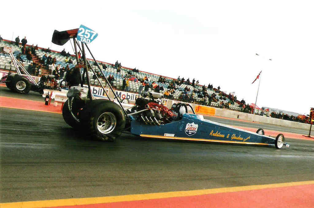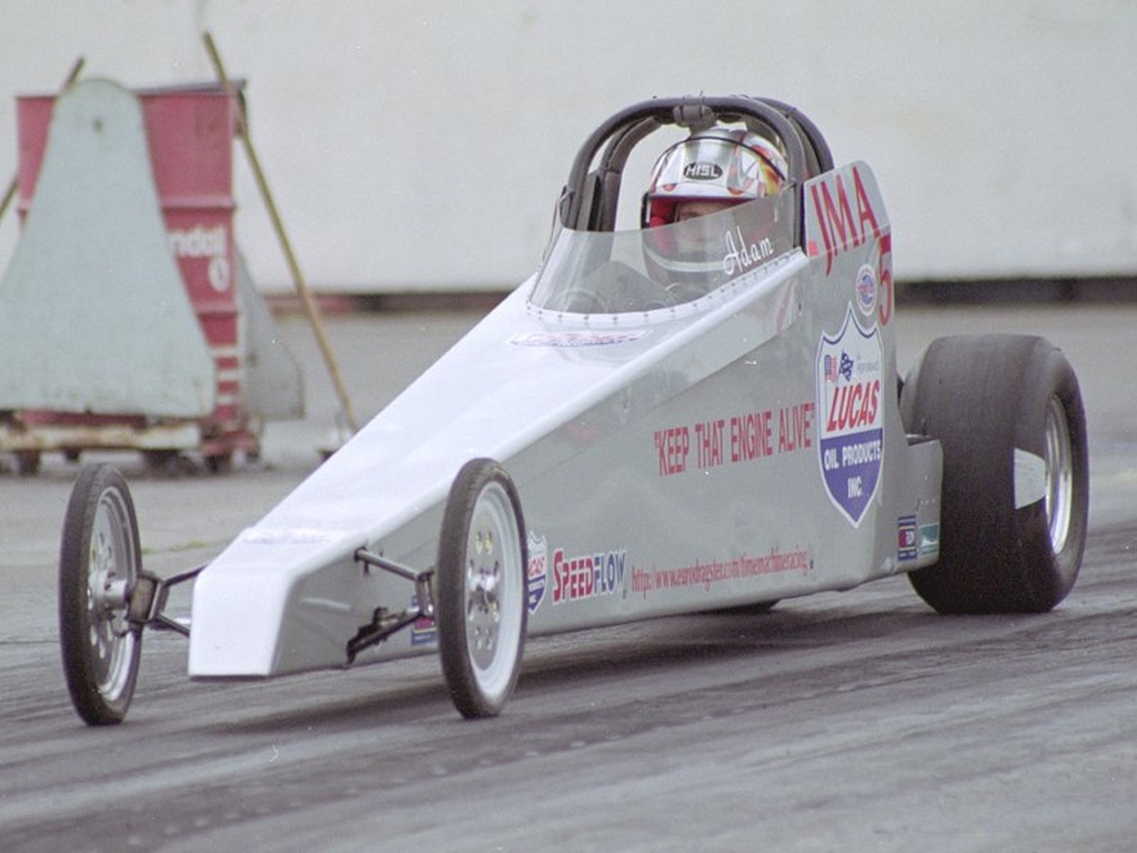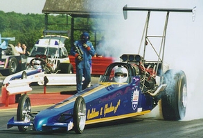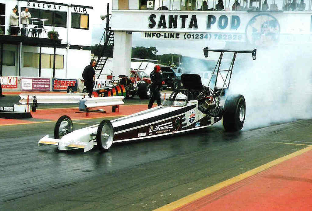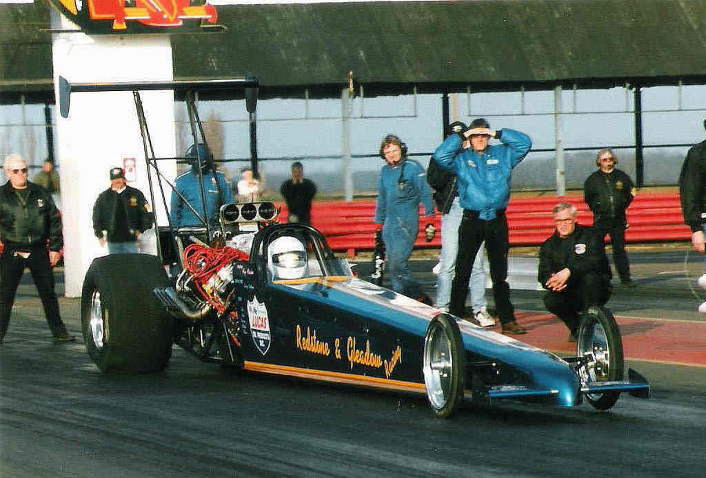 Nemesis For 1999 Fay had decided to take a step back from racing to concentrate on her business, SpeedFlow. The team partnered with Dave Wilson to drive the re-named Nemesis car, and to keep up with the rapidly developing TMD class a Whipple Screw supercharger and new fuel system was purchased from top NHRA TAD racer Bill Reichert. The step up in performance was instant, running the team's first 5 in round 1 against Lex Joon at the Easter Thunderball with a 5.99@221mph. Taking on the whole FIA championship tour was a big task, with Darren, Martin and Andy on the road with the rig most of the summer. Bill Reichert flew in to assist at Alastaro, qualifying number 1 with a 5.87@238mph but unfortunately damage in the semis ended that event. At Gardermoen everything ran like clockwork, improving to a best of 5.82 running consistently and taking the team's first ever victory in TMD in the final over Kari Eskelinen. The Euro Finals unfortunately ended in a final round loss after horrific tyre shake broke the rear end against Jarmo Roivas, however a new PB was set in the semis with a holeshot win over European Record Holder Eero Kilpelainen 5.78@236 over 5.74@246. The time and work required to run the FIA tour while running a business led to Bob stepping away from the team at the end of the season - but that didn’t keep him away from the track for long. Adam Gleadow, Bob's son, takes up the story, discovering Junior Dragsters at Santa Pod, aged 11: Growing up in a racing family I always wanted to race, from watching NHRA season reviews wanting to be like John Force and Al Hofmann, to watching John Spuffard and Gary Page battling in AA/FC over here. Clive Mechaell used to let me stand on his trailer against the fence to watch the racing, seeing Clive in the California Kid AA/FA do monster smokey burnouts and wild runs I had decided a Fuel Altered was what I wanted from a very young age!