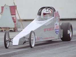 Time Machine 7 Junior Dragster had started in England in 1999, walking round the pits at the Euro Finals, I noticed the SPRC rental junior and mentioned it to Dad, at this time he was getting out of Top Methanol racing, so much for retiring (again!) March 2000 at a typically cold RWYB I made my licensing passes under the guidance of Ian Marshall, then onto the Easter Thunderball in the SPRC car again, running the fastest the car had ever run, before red lighting in round 1. At the event we did a deal to buy Phil Cook's rolling chassis and an engine from Paul Lindley-Allen, bringing back the Time Machine name last used on the TAD in 1998, a season getting used to racing and learning how to bracket race the car ran in the mid 11s. During this year I met Joe Bond who was also racing Juniors, we've been best friends ever since! Time Machine 8 Come 2001 and Paul was retiring from Juniors, so his car was bought complete, a great looking nicely proportioned car built by Stockholm Rod & Race. Early season testing had the car running well in the mid 9s@65mph, not too bad at the age of 12! This year brought a lot more success, immediately going rounds in eliminations at the Thunderball with a runner up at The Main Event to Nick Mugridge and winning my first event at the Cannonball over Ricky Emms. I was also the first English junior racer to race abroad, making the trip to Hockenheim, thanks to help with international licensing and logistics by the late John Ledster and Paula Marshall. A victory over future TMD champion Dennis Habermann in the semi finals with a new PB of 9.11 and first time over 70mph, resulted in another final round, coming in runner up to Markus Habermann.