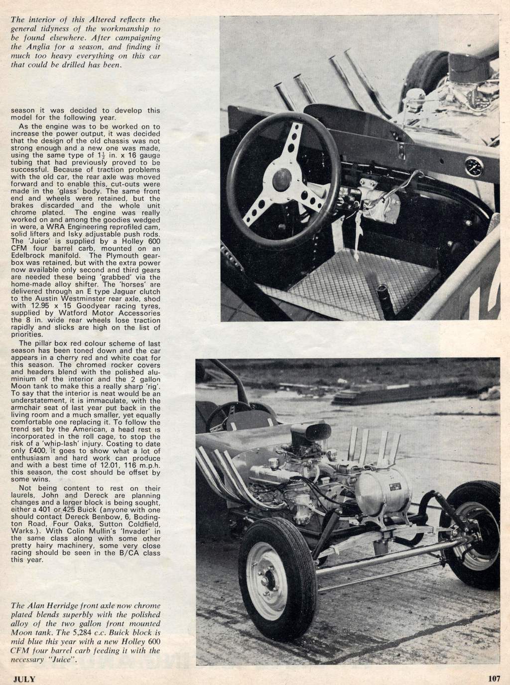 We debuted Tee Total at Santa Pod in September 1970 continuing into 1971 when we also took it to North Luffenham and Elvington. We were running high tens at 135mph and took it as far as we thought we could go with it. We then had the inclination to build a Dragster and at that time felt Altereds were on the demise and Dragsters were becoming more plentiful, so felt that was the way to go.