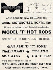 We then bought a 322 Buick engine and a three speed Cadillac Lasalle gearbox from Pete Atkins at Watford Motor Accessories. We were going to build a Model T Altered, and got the first fibreglass turtle deck Model T that Geoff Jago made, collecting it from him in Porchester. The downside was that the body was originally built for a street rod; it was full width. We did use it but ended up running it like that for only 12 to 18 months, it really was too wide. We built a new tube chassis and used a solid mounted Chevy rear end. Front axle was an Allan Herridge built chromed straight tube mounted on a transverse leaf spring with Mini shocks and Ford 100E wheels. The Buick engine was kept quite standard apart from a Lucas magneto and WRA Engineering solid lifter camshaft and adjustable pushrods.