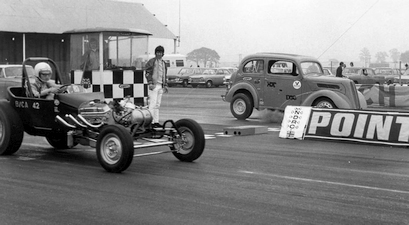 My inspiration for drag racing came from attending all six events of the 1964 International Drag Festival which started and finished at Blackbushe. My dad took me to them and they were all just brilliant. I was influenced especially by the gassers of George Montgomery and KS Pitman. The 1933 Willys coupe is still my favourite car in the world, a superb hot rod. As a kid my dad had an interest in motorsport but it tended to be more motorbike related, grass tracking and hill climbs. The Saturday treat was going to Birmingham speedway. As a little kid then I used to come home as black as a coal miner. In those days they were black shale tracks and because I was little, I used to go down by the fence. All good fun and it gave me the inspiration to do something competitive but at that time I’d not even heard of drag racing. It wasn’t until I saw the Americans compete at the Drag Festivals that I realised this was a sport I could afford to do at some level and was an exhilarating thing to be a part of. I subscribed to Hot Rod, Car Craft and Popular Hot Rodding magazines, collecting thousands of them and throwing them all away later in life to make space in the house. It’s one of the biggest regrets I have.