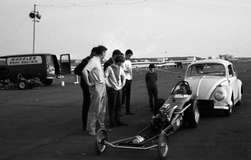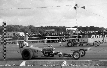I had not passed my driving test in 1968 but Bill was still happy for me to use his van to push drive Konkerer to start it at meetings. Although I do remember one occasion, when the fire up lane was supposed to be for push cars and dragsters only, whilst I was manoeuvring the van to get behind Bill who was steering Konkerer to push start it, the driver of a very low road going sports car decided to jump the start lane queue and got close behind the van as I was reversing to get behind Bill and I just caught the front wing of sports car before I realised it was even there. After a bit of a barney I told the guy to just get it fixed and let me know the cost so that we could work it out. A few meetings later I saw that the sports car had been fixed and found out that the repairs had been done by Allan Herridge. I found Allan and asked how much I owed for the repairs and he told me not to worry as it was really nothing to him. That's just the kind of guy Allan was.