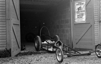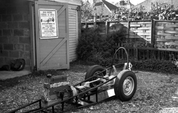 As Richard also had a great interest in cars, he was at that time restoring an Austin Healey 3 litre in the workshop at Clandon, I introduced him to Keith and Bill. I also went to Santa Pod with Keith and Bill in 1966 and, having the bug, I began to help Bill with the building of his car when he asked if I could help him go and collect the first chassis that he had built in Guildford. We loaded it into the back of a van Bill had acquired and took it to a lock-up garage in Farncombe that did not have any power, lighting or heating. Every hole for the bolts to hold the rear axle, engine mounts etc. had to be drilled out by using hand drills. The seat was made from plywood that we shaped to fit the frame using steam from an old kettle heated on a small spirit cooker.