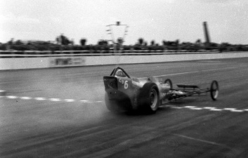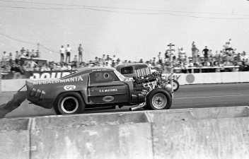 Bill named this car Konkerer, it had a 997cc Ford Anglia engine and shortened rear axle that Bill bought from Allan Herridge. When finished, the body work was painted in rolls Royce Regal Red by Richard Jarman and we used gold coloured lettering for the name. Whilst helping to build the car throughout 1966 and 1967 I began to start taking photographs at Santa Pod, first with an old 'box brownie 127' in 1966. When we went back to Santa Pod in 1967 I had by now acquired a Halina 35mm camera and Stu Bradbury let me get close to the start line with the 'official' photographers and I ended up with a nice collection of photographs and slides.