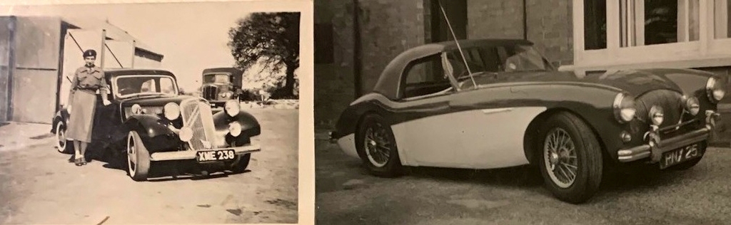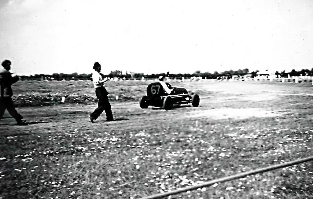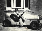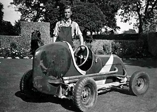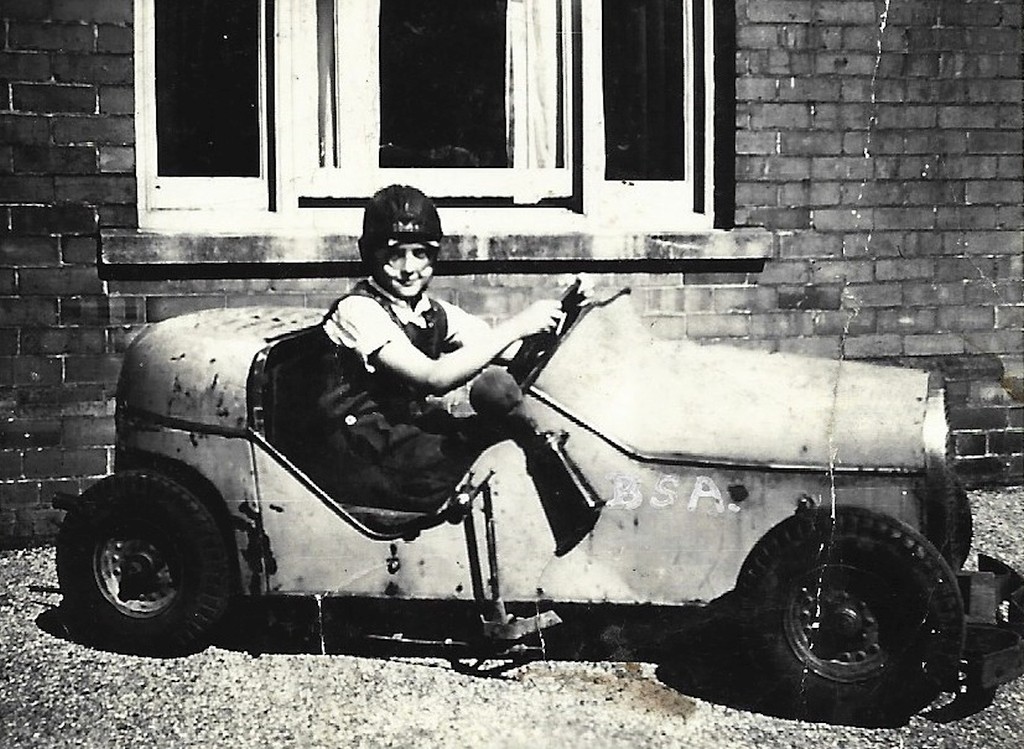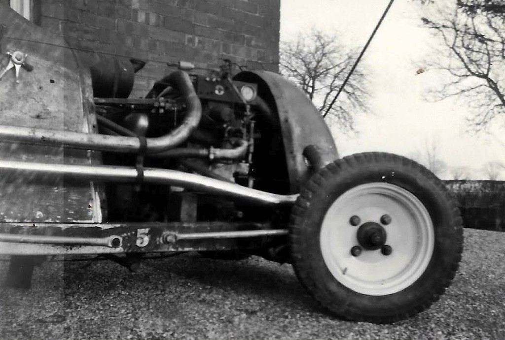 I was born in 1936 into a Lincolnshire farming family. I'm the oldest of three brothers. My family home is two miles up the road from where I live now, my next brother lives there. I was 18 before going into the Army. My Dad bought this house for me when I came out in 1956. He was helping the chap put new buildings up and got the first offer to buy it at a good price. That's how I got started. My Dad got me a bumper car from a fairground ride in Hunstanton in Norfolk (2). It was originally electrically powered so he fitted in the rear a 350cc BSA motorcycle engine. I drove it round the tennis court tearing all the ground up. Later on, Dad brought me this. We had a famous Speedway track in the village, Bell End Speedway. At the last 2 or 3 meetings held there were these Skirrow cars, 4-wheel drive. Only 17 were made and my dad brought me one with no engine, it would have been a V twin JAP running on dope and everything. I put in a Douglas motorcycle engine (3-5).
