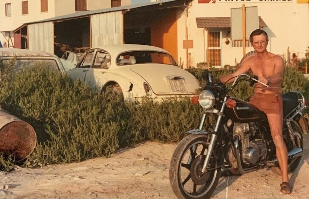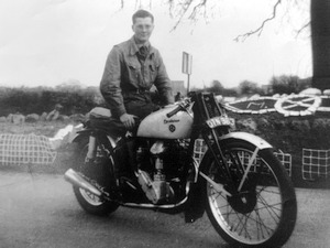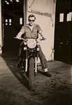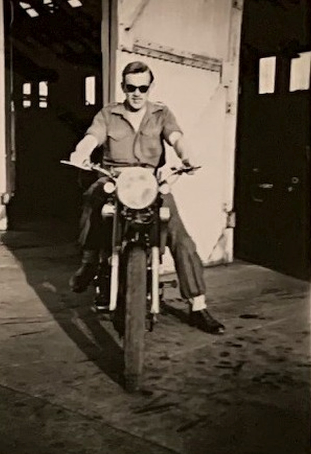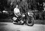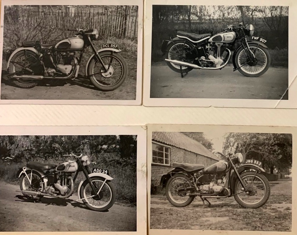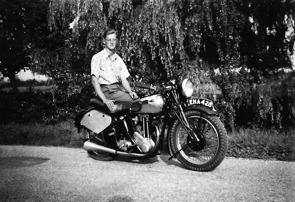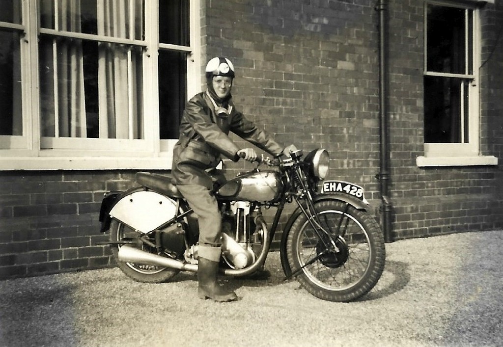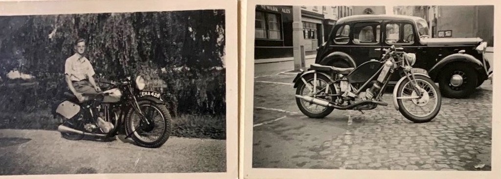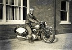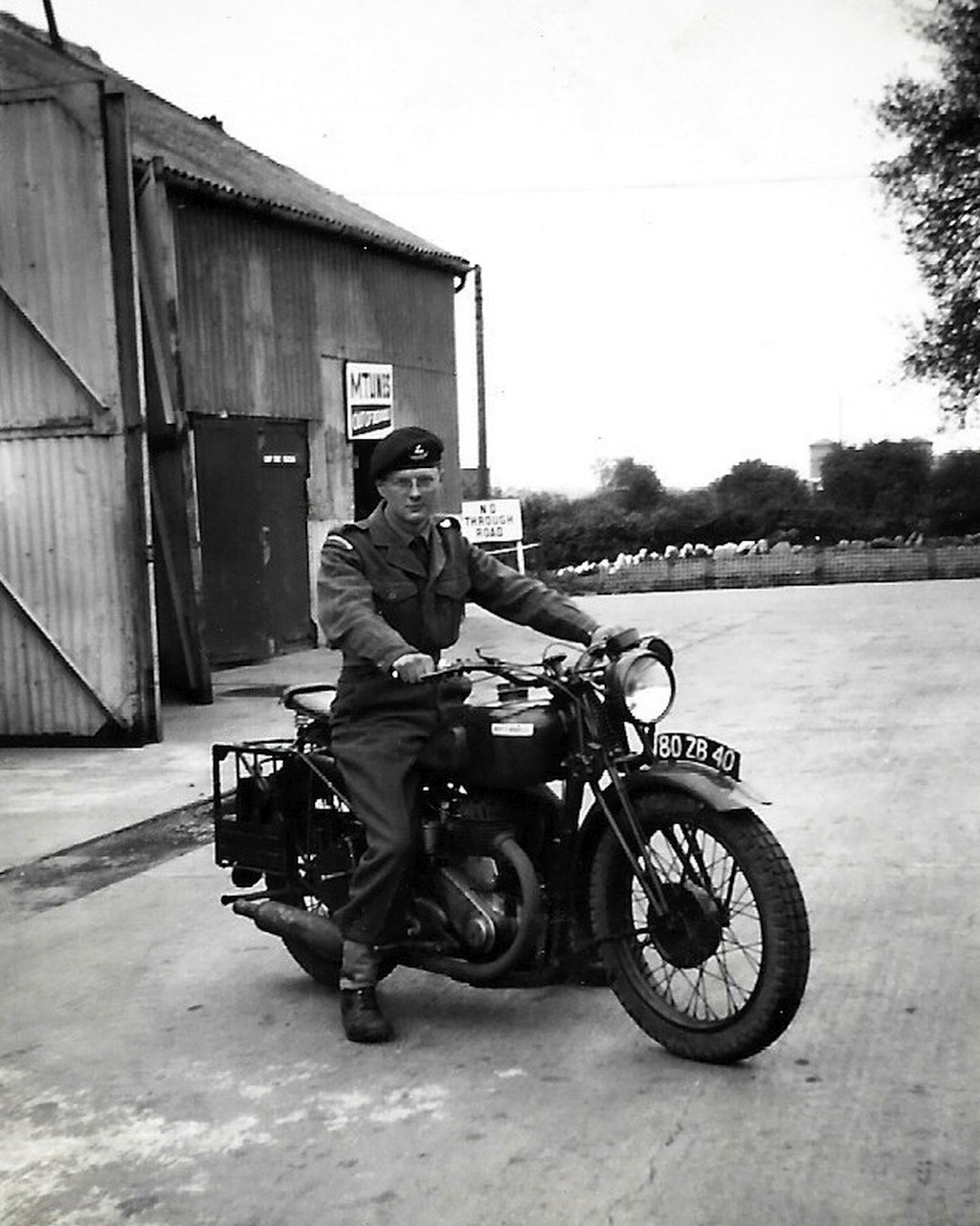 All these motorcycles were mine; I used to buy them and paint them up. (9) That's me dressed up to go out on one. I was just crazy about motorbikes. (10) This is me on one of mine in Cyprus. (11) This is me on a Norton I had to ride with a tin helmet on. I rode to the post office to collect the post for the Royal Warwickshire camp bouncing all over the road, flat out it only did 55mph. (12) That was my Excelsior. I got told off by the Police in Spalding for making too much noise with those exhausts. That bike was a vicious thing.
