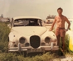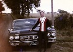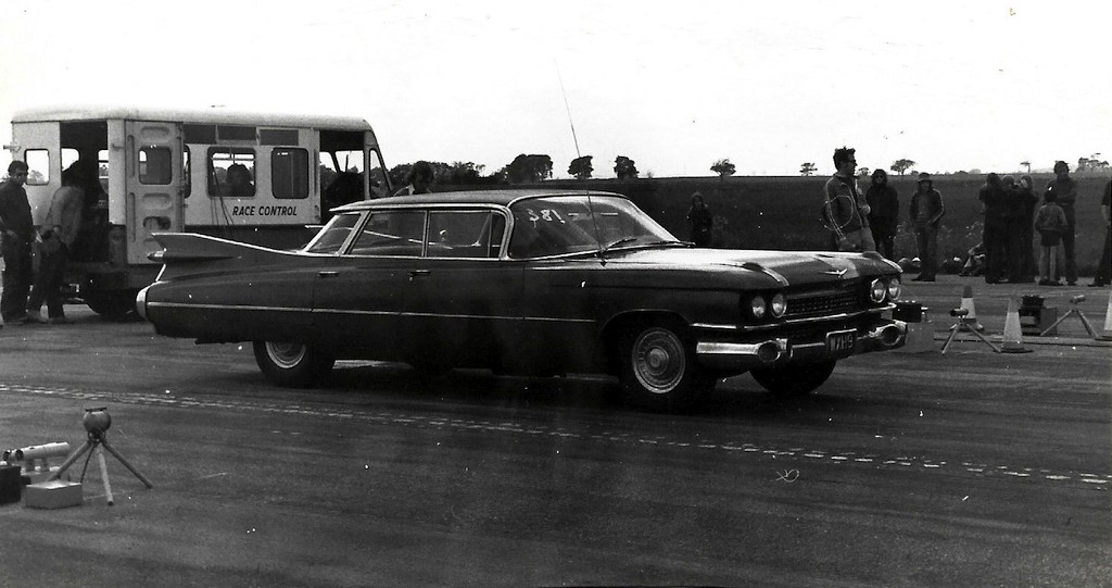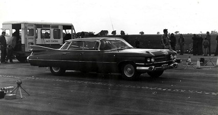 I also bought a 1935 20/25 Rolls Royce , with a year's MOT, at auction for a maiden bid of £15, because it was a hearse in nice order. I sold an E Type Jaguar for £400 to a friend, a week later he was being silly trying to overtake someone and had to go in the dyke, damaging the front corner. The wheel was alright. I was too embarrassed to offer him £100 having just sold it to him for £400. His friend phoned me and asked if the car was worth £20 to me and £5 for delivery, yes, I said. This was 60 years ago. A friend spent £70,000.00 to have it rebuilt as a Lynx D Type (24) but it's worth £200,000.00 today. These are my American cars; I was crazy about American cars. Look at that, 7 JON on my Pontiac (25). I let that go with that number on it and my Cadillac was YMJ 1 (26). YMJ 1 has recently been advertised by Registration Transfers for £11 thousand. I'm tempted to call them to ask how they acquired that registration number. That was another Cadillac I had, that's drag racing there (27), not me but someone else with it, I don't know where.