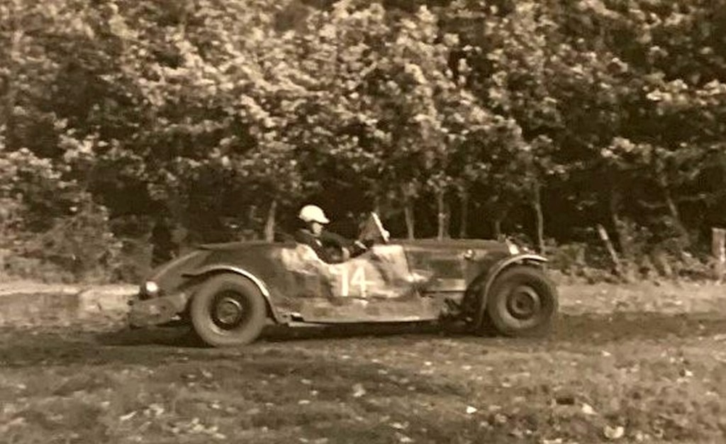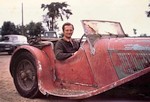 Seeing that Ferrari there, that's the 149th Ferrari made in 1952 (31), it was an immaculate one with no engine or gearbox, I got it for £150.00. The deal with a local Ferrari Dealer was a £100 Mini, £50 cash. I still have the Borani aluminium spare wheel which is worth over £1000 today. I wanted to put a Rover V8 in it and keep it. My wife took a call from a guy offering me £17,000 for it, what do I say? So, I sold it. George Brough was a famous rally driver racing in the Alpine Trials in Europe, he built big motorcycles using the name Rolls Royce with the permission from the company. He also built a one-of-a-kind race car for himself (32-33) which my dad bought from him at the end of the war. He went to the first Silverstone race meeting in it in October 1948. He sold it at a loss, I found it 20 years later, I got it on a deal for £10 because it was covered in mud and grass. The old boys who owned it did grass track racing. I drove it back home. It's worth £100,000 today. It was rebuilt and had a Hudson engine and chassis, supercharged.