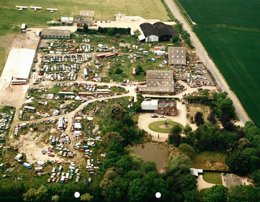 This all happened because I had a scrapyard with cars everywhere, 1500 cars on 5 acres, we had so many cars that are worth a fortune today. We should have never done it, ridiculous what we had gone through. We were a farming family but I just wanted a scrapyard. I would acquire a lot of cars for free just to be taken away. I collected for free a pre-war Jaguar SS and a MK 5 from South London, both in my bus, but nobody was interested in them. We cut down the bus to make it into a pickup (35). We needed more room to expand the Airfield (36-40), you can see the planes in the aerial photos, so we started to clear out the scrapyard. This was brought on by environmental health reasons which started to come into force.