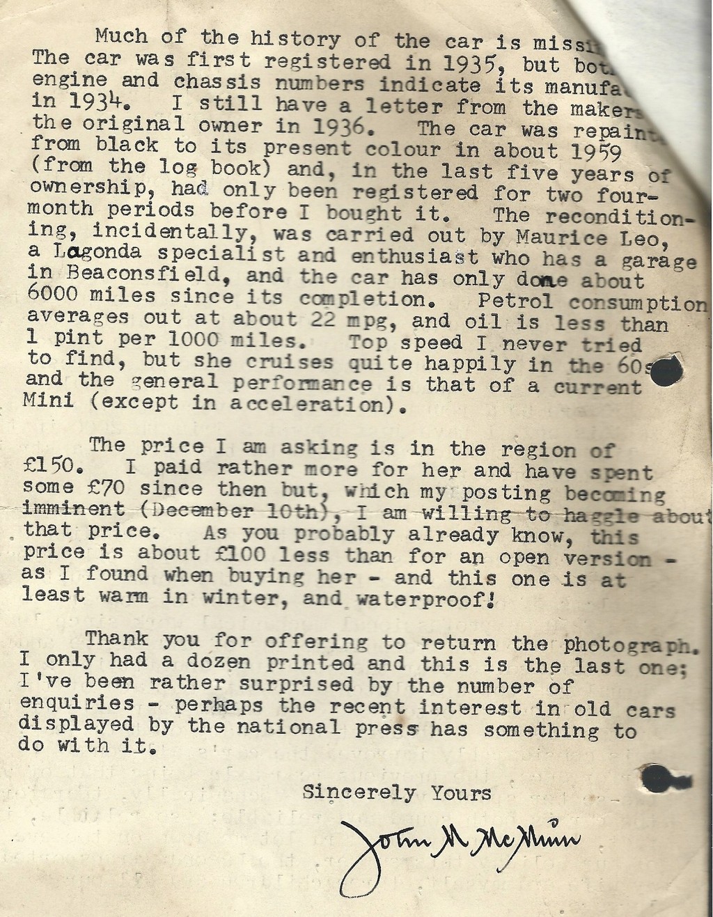 That's a very rare Humber convertible (20) with an aluminium body given to me by an Aunty. I sold it to a lady in London. Only 21 SS 90's (21) were made. This was a rough one from a local farmer, he wouldn't sell it to anyone but I had a Jaguar engine for £60 that he was desperate for. I said I won't sell but I'll swap it for your SS 2-seater, so we did. A chap in Canada bid me £950 for it so I sold it and it's just been sold in America only half rebuilt and with the wrong engine, it fetched £140,000.00.