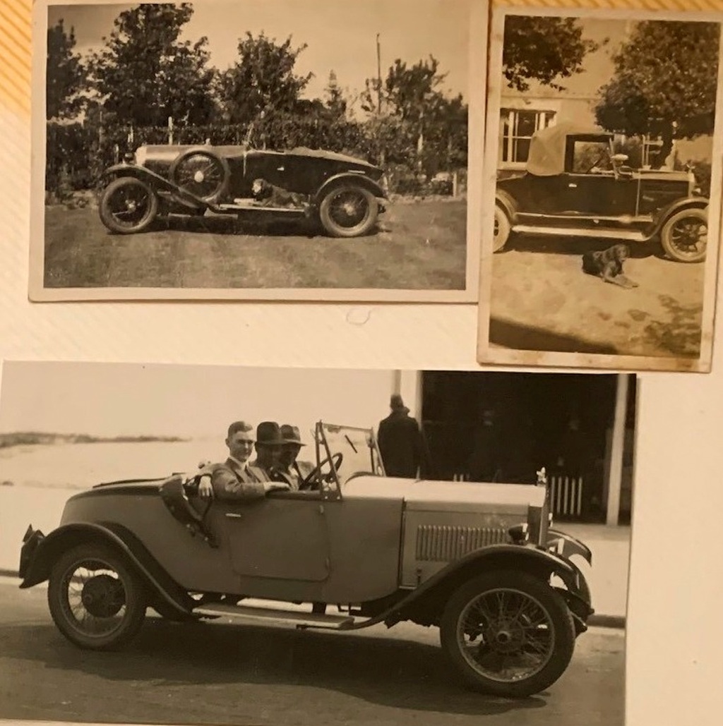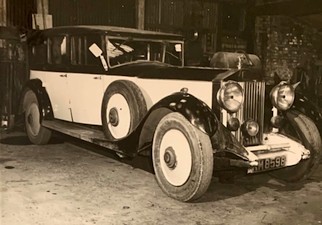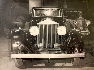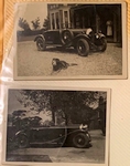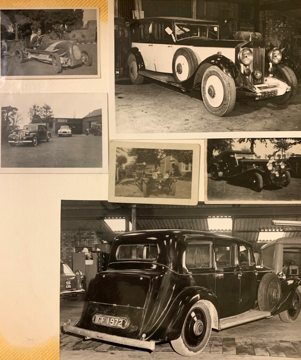 These are 2 Rolls Royces. I drove the Phantom II, the one on the right (23), for a year. It had a Gardner diesel engine in it that cost me £70. The one on the left is a Phantom 1 (22), older than that with 21inch wheels, that was £150. Alan Mann Racing, who built Chitty Chitty Bang Bang wanted a big chassis and engine, so they bought that car from me. When they came up here, they left me a photograph of Chitty they had just built. They said you're the first one we'll offer it to before it goes on the market at £12,000.00. That was too much for a homemade car, I didn't have that much anyway. It was sold five years ago for half a million pounds and went to America and it's come back here now. That cost me £70 that I brought from a friend who told me only the other day he only paid £50 back then.
