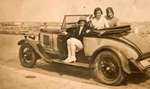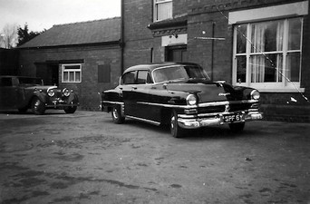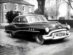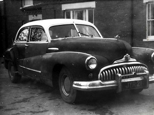 From a gypsy who sold carpet ends in the area I brought NLU3, the Buick 8 (28), for £50. This is another Buick 8 (29). It was covered by salt water in a flood on the Lincolnshire coast. I bought it in Waterbeach, Cambridgeshire. All the paint was gone and it was covered in a film of rust. You can see that I had started to paint the roof cream. This is my first American car, an old Chrysler (30), I put 5 chromium plated stars down each side of the mudguards. I was driving downtown and a chap shouted out there goes the sheriff to his friend and walked straight into a lamp post.