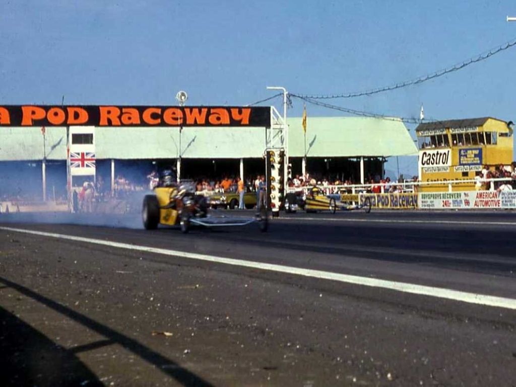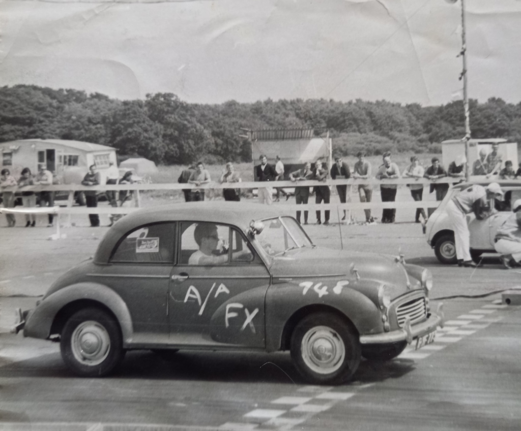 When Santa Pod opened in 1966 Bill and I headed up the M1 in his old Ford van, I think that was the first time we had ever been on a motorway! Although Bill had started to build his car, we still went up as spectators to pretty much every meeting. There was one weekend that we went to, there were loads of spectators on the first day but there were hardly any competitors. So the powers that be announced that if anybody wanted to race their own car they could, was this the first ever run what you brung? Bill and I took turns to drive my old 1958 split window Morris Minor for our first ever quarter mile race. The Moggy had a highly underpowered 948cc engine and it managed to fly down the strip with time of approx 23 to 25 seconds, but hey ho we had a laugh and we both have photographs to prove it!
