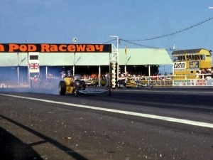 It all started in 1963 during my last year at the Royal Grammar School, Guildford. One of my fellow pupils bought a copy of Hot Rod magazine and he was showing us all these pictures of weird looking vehicles (dragsters and hot  rods) and their big engines and wide rear tyres. In 1964 the first Dragfest at Blackbushe airfield was being advertised so, with the memories of that magazine still in my head, I went with a couple of mates to see what was to change my life for quite a few years. The dragsters of Don Garlits, Tommy Ivo and Tony Nancy just blew us away! Just as exciting were the cars that looked sort of normal. Factory experimentals they were called, big American saloons but with a lot more power and noise. The drivers were Ronnie Sox and Dave Strickler. My favourites however were the Willys coupes driven by Keith Pittman and George Montgomery. These were old looking cars with large supercharged V8s, they looked so ungainly (and handled accordingly sometimes). I guess if someone built a car like that over here at the time it would probably have just been called a special?