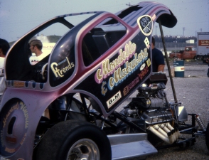 In 1968 I had the chance to go to Canada with my mate the late David Fleming, he was Canadian by birth and wanted to visit his relatives. This was the first time either of us had flown. It was a charter flight out of Stansted (in those days it was an airfield with Nissen huts, nothing it is like now) The flight was to Toronto via Gander in Newfoundland in a Britannia turboprop and seemed to take forever, no inflight entertainment in those days! Most of the time we just visited David's relatives and we were at a party one night when one of his cousins, Bruce, turned up in a Chevrolet Malibu with a highly tuned 396 cu in motor. You should have seen my face when he asked us if we wanted a ride in what was basically a street legal race car, it pulled wheelies in first gear out on the streets when no police were about. On the last weekend of the trip Bruce met up with a friend Brian Doherty and they took me to a local dragstrip at St Thomas Ontario, and we watched some really good racing. Before we came home Brian said if I wanted to come over again I could stay with him and his wife and we could take in a lot more racing, I did not need to be asked twice! In 1969 I packed in my job and went back to Canada for two months (David was to go out later in the year and settled down until his early death in 1991). Brian and I went to several race meetings at Cayuga, Grand Bend and Toronto International strips. The highlight, however, was a 600 mile trip down to Indianapolis for the NHRA US Nationals with Brian and his wife. This race meeting was huge, with over 1600 competitors. I think qualifying for the stock classes started on Tuesday or Wednesday and the dragsters etc on Friday and Saturday with the finals on Sunday and Monday (Labor Day). There was so much to take in during the three days that we were there. All the names I had read about were there, Garlits, Prudhomme, Kalitta, McEwan, McCullough, Sox etc, the list was endless. We were to see so many cars (top fuel was a 32 car field for starters). Also there was The Freight Train, a twin engined gas (petrol) dragster, Funny Cars (then a fairly new class), but my favourites were the AA/Fuel Altereds. With their short wheelbases and blown engines they were a real handful. I think best of all was Sush Matsubara driving the Mondello Fiat Topolino, Wild Willie Borsch in The Winged Express, a T bucket that he drove with his left hand holding on to the door and Rich Guasco's Pure Hell. That trip was to set the scene for the next decade when, apart from 1970, I went out to Canada, stayed with either Brian or David and drove down to Indy. Both Bill Haynes and Richard Jarman made the trip with me in different years.
