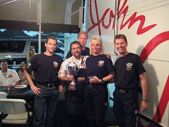 The thing is this: Championships are not won just like that. The general theory is that when you have the equipment, things will go your way. Of course, when you have a good up to date car, it can make life a lot easier, but it still is just the first of a long list of factors you need to succeed in. Money is one of those; without a good cash flow, it's basically impossible to run a Top Fuel team that can compete for the Championship. The cost of parts, fuel and travel are huge. The crew has to eat, and need presentable uniforms etc. This money has to come from sponsors, or as they should be called nowadays, partners. Potential partners won't call you, you have to find them. This sponsor finding is one of the hardest things in racing and, as I said before, without money there is no success. After you find your partners, the next thing is to keep them happy and involved in what you are doing. Hospitality is the key to success; if you look at the NHRA Powerade Championship all the bigger teams have more pit space that is used for their guests, including their cars and bikes.