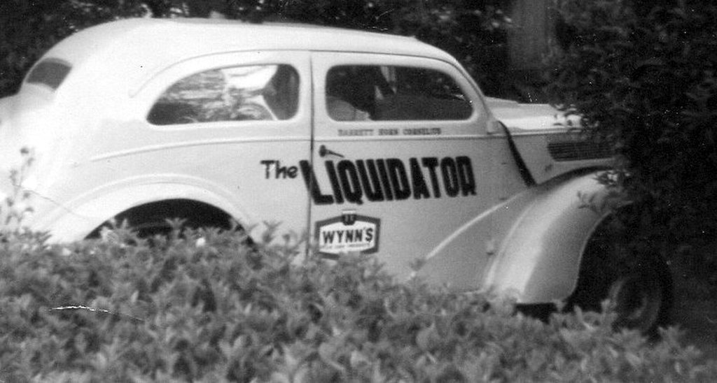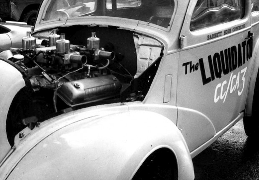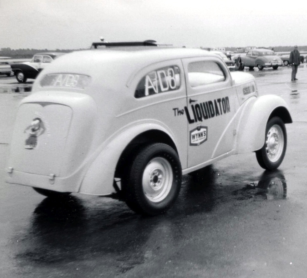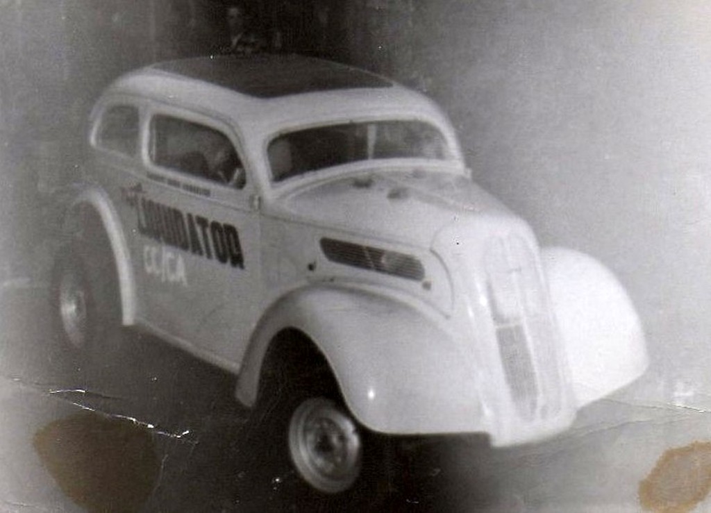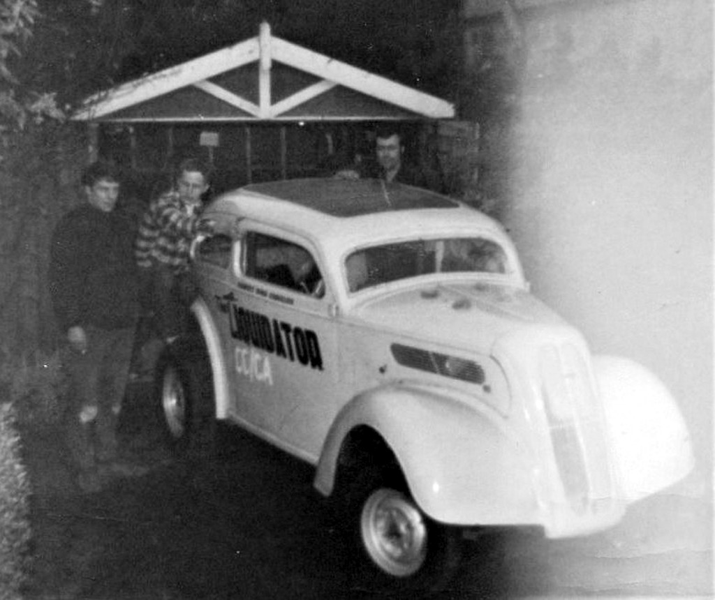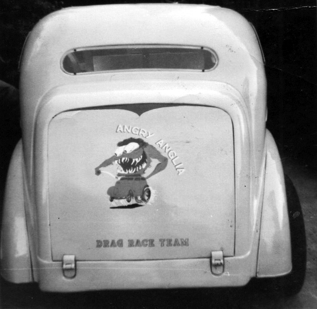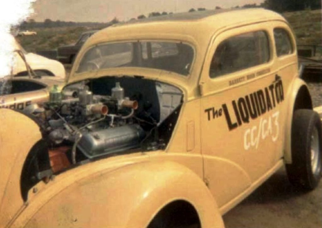 The Liquidator is one of those memorable cars from the early days of UK drag racing that people still talk about. It had a great name and the roof chop gave it a very striking appearance. Built by Geoff and Norman Barrett, Roger Horn and Mick Cornelius, who all came from the Luton and Dunstable area. Geoff Barrett... I was born in Dunstable and moved to the village of Ivinghoe, and then back to Dunstable at seventeen years of age due to dad's health. I started as an apprentice at AC Delco finishing up as a maintenance fitter. Late 1965 after watching the American drag teams at the 1964 – 65 Dragfests, Mick Cornelius, Roger Horn and myself decided to get involved in drag racing and the decision was made to build a Jag engined Anglia. Based in Dunstable we bought the Anglia locally from a friend of a friend for I believe £1. We towed it to our rented garage to remove the running gear and clean up the chassis (wire brush, no pressure washer or power tools here!) Next, we bought a complete 1953 Jaguar Mark 7 through Exchange and Mart, in London for £3, and towed to Dunstable to remove the engine, trans. and instruments. We didn’t strip the engine down and ran it pretty much as it came out of the scrap yard. I do not know how we did all this with no lifting gear! We then decided to use a Ford Thames van rear axle because it had a better ratio for drag racing and we kept the Mark 7 Jag gearbox. I did all the welding, oxy acetylene in those days, and we decided to chop the top. Time consuming with lots of cutting and welding, but I think it came out well. This was done with hacksaws, welding and filling. Painting, for a few beers, was done in a painting booth, by a friend of Roger Horn and Mick Cornelius did the sign writing. It took about 9- 12 months to build the car and the total build cost was £20. The name The Liquidator came about because of a spy spoof movie of that name which was out in 1966 and the lettering style on the car is very similar to the lettering on The Liquidator film posters. In fact, at the request of a cinema in Luton we put the car in their foyer for the week of the movie, after they had seen a picture of the car in a local Luton newspaper.