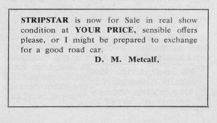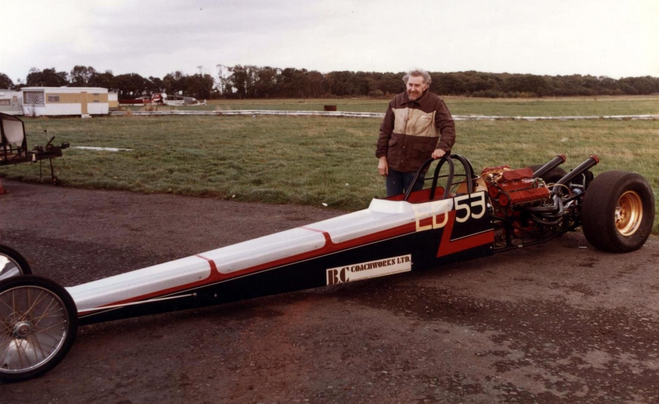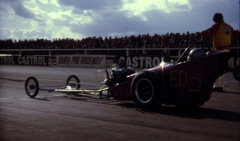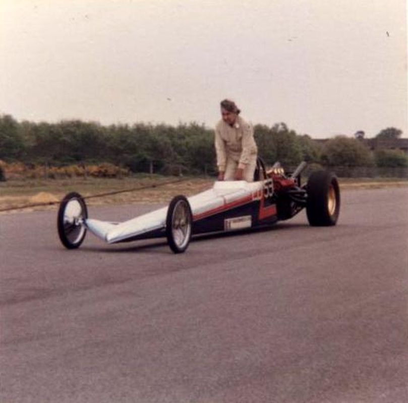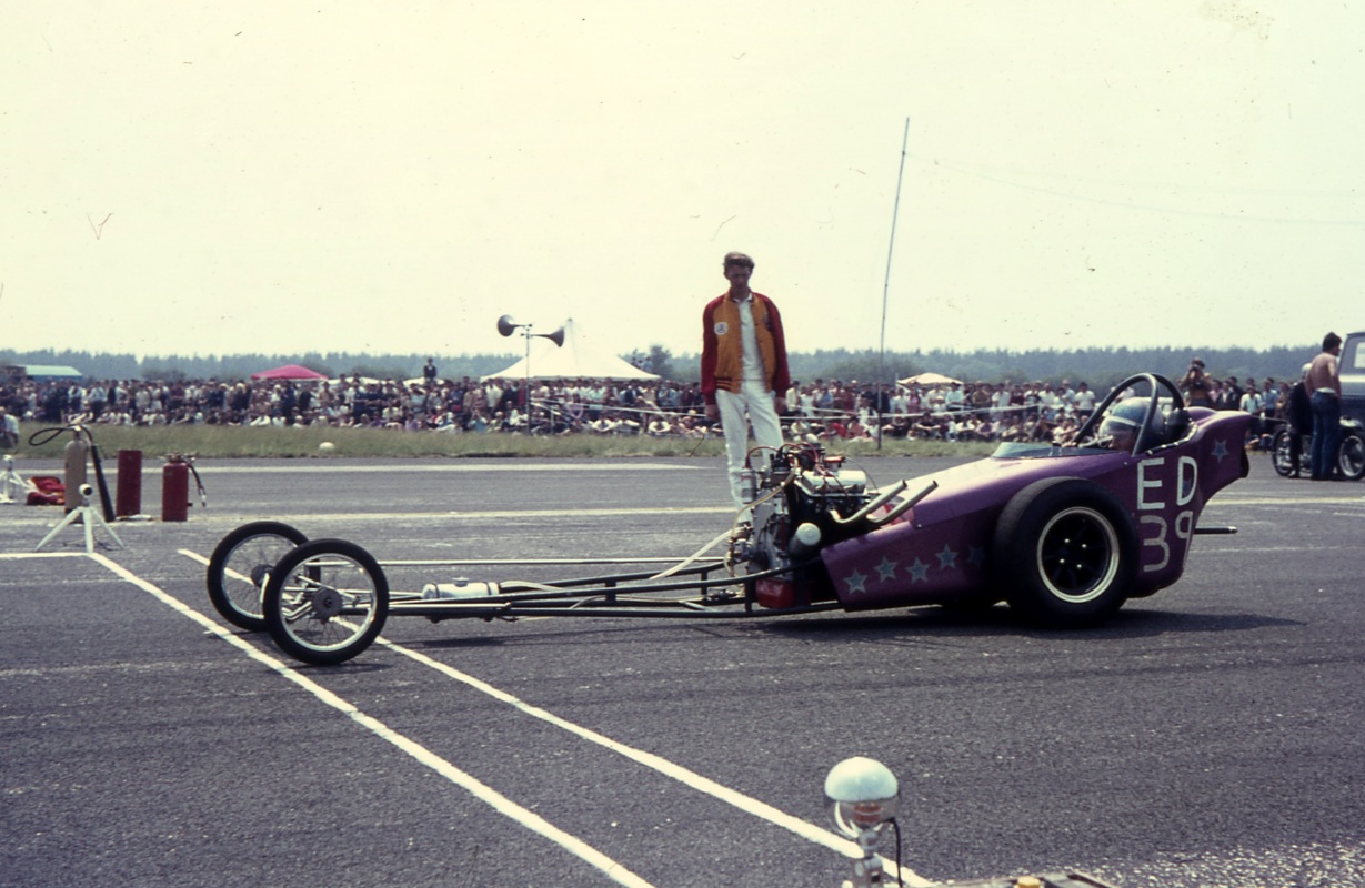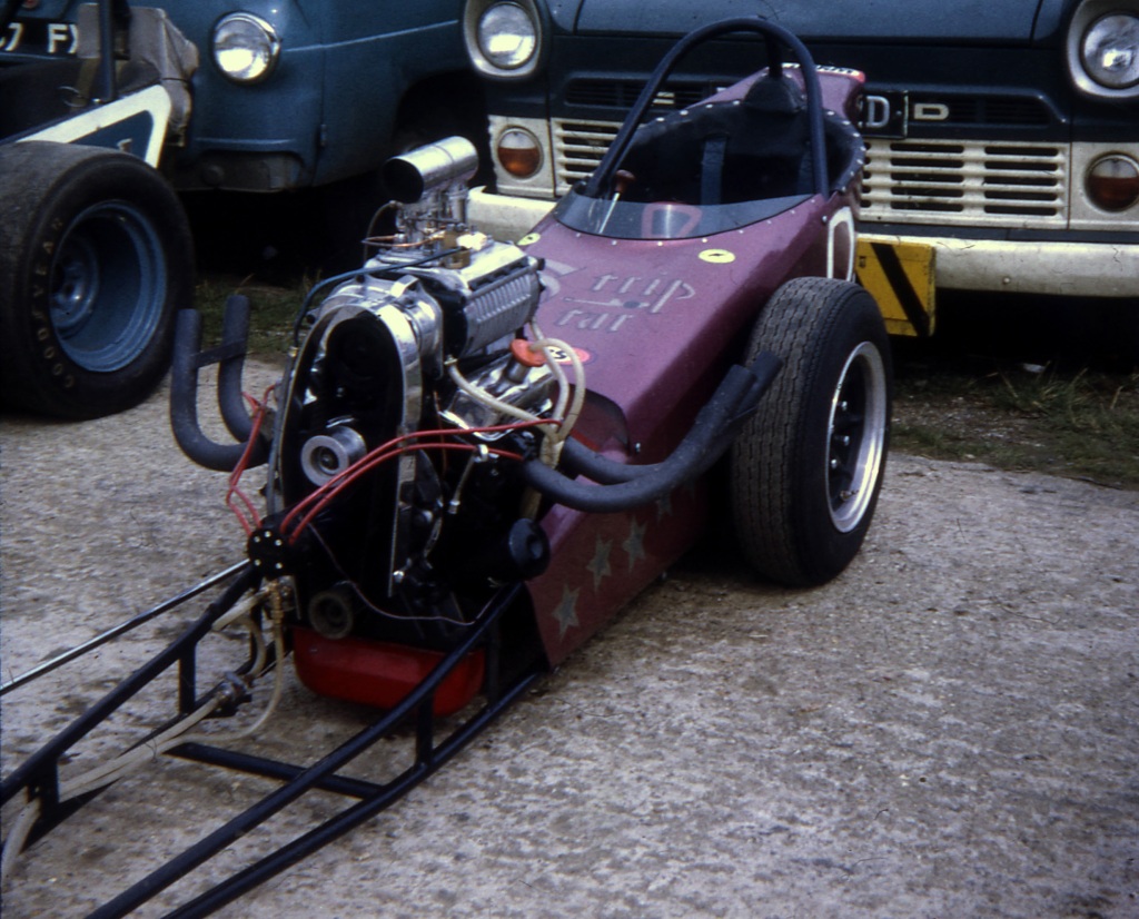 I first saw drag racing in 1968 at Santa Pod Raceway. The June 1969 copy of the Drag Racing and Hot Rod magazine had a for sale advert for Derek Metcalf's dragster Strip Star. It was Derek's second FED, this one with Harold Bull chassis, V4 Ford 2 litre supercharged engine, the sale also including a van which the car fitted into. I purchased the dragster and van from Derek after his time in drag racing from 1963 to 1969 had come to an end. My first event was 5th October 1969 at Santa Pod. In 1970 I attended nine events at Santa Pod and one at Blackbushe 7th June winning in Junior Dragster, running a 12.75. On 30th/31st August I ran a 13.78, then in September ran 12.7 and 12.45/104mph in the Middle Dragster final, beating John Rotherham in Scorpion. In 1971, I raced at three events at Santa Pod, also one each at Blackbushe and North Luffenham, campaigning the dragster at my last event for almost two years, at Santa Pod, on 10th October 1971. I was by then running times similar to what Derek had done.