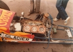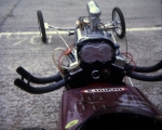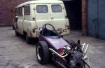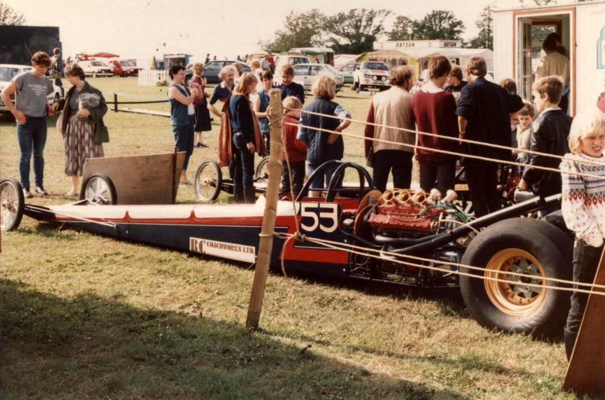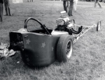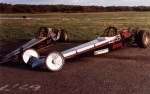 I had acquired a Ford Cosworth V6 GAA 211ci 3,400cc, naturally aspirated engine and many spare parts, running it on petrol. I built another slider clutch using a Ford C4 auto gearbox and Austin Westminster rear axle from Russ's dragster. The body panels were made by Dennis Priddle, then painted by myself. During the construction period, I sold the Shere Coachworks business to Bell and Colvill of Clandon in 1980, buying the business back in 1982, moving to Dorking in 1988 renaming the business B & C Coachworks. Martin worked for Dennis's in Guildford, working on the motor mowers produced there. Then, the Surrey County Council looked after the range of mowers and tractor grass cutters that they owned.