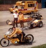 |   As told exclusively to   Preface: Richard Jarman was first involved by watching the sport at Santa Pod, buying the Harold Bull-built Strip Star dragster from Derek Metcalf in 1969. Richard first ran the car with a 2-litre Ford V4 engine; with the involvement of his brother Martin, the engine was changed to a 3-litre V6 and times came down, with sponsorship coming on board. After running Strip Star for 14 years, Strip Star 2 came along in 1983, the chassis having been built by Tony Anderson and times reducing to mid eights. I (Richard) started a panel beating and spray painting career, working for Martin King's business in Clandon, Surrey. This is how I met John Smith at a gig in Cranleigh in 1966. I was at this time restoring an Austin Healey 3 litre sports car. John introduced me to Bill Haynes and Keith Stacey. Bill's drag racing career was from 1965 to 1977, Keith Stacey's 1964 to 1976. John Smith, although not a racer, did from 1965 help Bill. Tony Anderson also attended meetings with Keith, Tony's career was 1964 to 1975. Russ and Sue Carpenter became involved in 1969, crewing until buying Tony's third car 'Even More Trouble' in 1975. Russ's story is already available on a separate page which you can see by clicking here.
