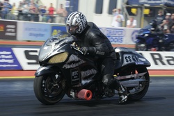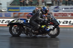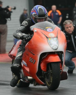 So how is the season going from the G Man so far? Well pretty well I'm guessing, judging from the mile wide grin. But let's ask him – "It's been a very hectic start to my season starting with back to back meets, only one weekend off, then Shakey. After Hungary I needed to freshen the head as it had new valve seats that had settled and now after last weekend I pulled a cylinder stud so the motor is stripped again! No damage so I'm thankful for that!" We contemplated the upcoming Main Event, where Graham must be considered one of the favourites for the win and he shared these comments with me – "I think we'll have another record field and bump spot, I can't believe how things have stepped up in the last twelve months. I could imagine up to eight bikes running 7.3's or better in qualifying - the two races this year have produced four different finalists and the traditional big hitters are going to come back really strongly, I'm sure." Running one of the quick SSB bikes isn't a one man job these days and Graham relies on his crew to prepare the bike, doing the between round maintenance and getting him back from the shutdown area. Sam Birch normally carries the workload in the pits, but unfortunately he isn't available, so Dave Hall and Ond will be helping out. Like the runners and riders in all the classes, Graham is suggesting a conservative approach to the early part of the meeting, commenting - "We plan on a steady start on Friday and then will try to build from there. I plan on using the nitrous in fourth gear from about the eighth mile onwards instead of just fifth and if we keep getting out run - like last weekend when Graham Balchin flew past me at the 1000 foot mark - I'll get the jet drills out! I'm assured that the track is in excellent condition and we have to take advantage of it as I'm sure the rest of the field will." Call me a cynic, but I don't believe him or any other of these "I'm having a couple of soft passes on Friday" merchants – they will be dropping the hammer and looking to set the pace, in my view. When pressed on who the key players would be, Graham suggested "The riders I think need to be watched are Ven – obviously - the two NLR bikes of Dave Holland and Wayne Saunders, Boisy who's on a roll, Graham Balchin with the Brian Johnson clutch that now looks sorted, Garry Bowe who ran some stunning eighth mile times at Easter, Peter Field on Big Frank's bike and The Bounty Hunter who can smell the money. Expect to see the mid pack moving up as well with Stephen Mead and Thomas Granica looking good." I'm out of breath just reading the last quote and as you can see Graham isn't leaving many people of the reckoning when it comes to his mental preparation for the meeting!