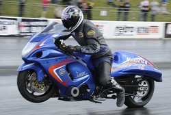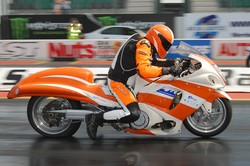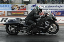 "So over the winter it was time to pick up the pieces and regroup and a very busy off session it turned out to be. First off, building two new fresh 'bullets for the gun' with new pistons, rods, heads and other bits and pieces. The second motor, which is sitting in the wings, has had Brian Johnson's magic fingers inside so watch for some high mph later in the season. We may even give it a run at the Main Event. "The biggest change made is to the clutch. We have now put into reality Brian's idea of a new clutch system and the few hundred hours plus which the BJ spent whittling metal in his workshop is looking like it's starting to pay dividends. The Easter meeting showed promise, but gremlins in the control system put a stop to the fun and a round one defeat. However last weekend's meeting at the Springspeed Nationals was a great result for us, taking the win with nearly three-tenths on the rest of the field was a well-needed boost for the team. So with the team on a high we look forward to the Main Event, one thing is for sure, we are back in the game!" It's great to hear such a positive report from Graham. I know he is very respected by the rest of the SSB field for both his riding skills and technical knowledge. One of my all time drag racing heroes from either side of the Atlantic is Brian Johnson, and I know the depth of expertise he will be bringing to Graham's race efforts will also make a big difference. So after his recent outing, I would expect to see Graham in the mix at the weekend. Tuesday 24th May 2011: Quickest field ever? Richard Hann, aka Boss, has been in touch to update us on his winter exploits with his very clean Hayabusa, together with his plans for the Main Event. "Over the winter the motor was sent down to Ray Debben, who gave it a really good rebuild, together with a few modifications", said Richard. "Ray put in a new R&D transmission, together with a Gann clutch. I was a bit short of time, as I have been busy down here in Somerset with work, so I dropped the bike with Brad O'Connor, who took a good look over the bike and added a few secret' bits and pieces to it!"