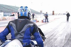 That led them to decide to do what they referred to as "A bit of test year in 2011", but unfortunately the first outing at a Straightliners meeting resulted in the much-lowered bike having a coming together of front tyre and radiator, bringing the meeting to a premature close for the guys. Cue a hasty exit to the workshop to get a custom fabricated radiator mounted under the seat. The duo pushed on a decided to enter the Thunderball. By this time they had persuaded ACU Champion Rick Stubbins to work his magic on the bike. For my money, Rick is one of the best riders and bike builders and tuners in the game, so it was fair to expect this would be a boost for the guys. From that point, every run was faster than 8.0, with a 7.7 being the next run, then not long after that a 7.49 at 191 mph came up on the scoreboard. Pete commented "The 49 was absolutely awesome and beyond anything I imagined I would achieve at my first meeting. I was hoping for an even quicker next run, but Rick spotted the headers on the bike were cracked as he rolled it out for the next run". The team got the pipe welded quickly, but of course this threw the tune up data out of the window. So the next runs resulted in a few wheelies and a broken fairing as the guys worked back to a decent tune up. The team made it through to the semi-finals, but the plenum blew off at half track, leaving Wayne Saunders to take the win with a storming 199 mph terminal speed. "I went to the meeting hoping to get a good setup and work from there over the season", reflected Pete, "but I never expected to make the semis while still learning to ride the bike. I'm really grateful to Frank for letting me ride this awesome machine and to Rick for setting it to be so rideable and quick. I think there is a lot more to come from Team Twiglet. For the Main Event I would like to qualify well again, but I also know the rest of the field will be very quick."