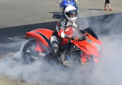 ![]() As told exclusively to Tuesday 31st May 2011: Over and out Well that was a damp ending to the Main Event for one and all, sadly. I wanted to sign off with a final SSB blog, having enjoyed putting it together over the last couple weeks. I took a trip up to Santa Pod yesterday, primarily to speak to George Bryce about our Pro Stock development programme. But it was great to walk through the pits and speak to friends old and new. Correction – it was great to lean into the gale and try and force my way up the pits – that was the headwind to beat all headwinds! A great day for windsurfing, not so great for bike racing. I watched one round of SSB qualifying from right next to the gantry. Watching these bikes approaching under power is an impressive sight, the front wheel has this sort of loose relationship with the tarmac, as in it doesn’t touch it very much at all. I watched Steve Venables wresting his bike through the finish line, leaning it hard left into the wind as he crossed the line. Later Ven was telling me what a smooth run it was and he was surprised by what I had seen – it looks like these guys are so focused that they don’t realise how much they are moving around to correct the bike in poor conditions. I spent some time talking to Garry Bowe and Mickey Templeman in the Bowe awning. Just great to see Mickey out there again so soon after his bad fall at Shakey and great to see him in his jovial mood, bantering away with Garry. At the time I showed up, Garry had damaged a big end by the look of it, so Dave Smith and Mark Watkins pulled up the deck chairs to give Garry "technical advice" on fixing it. I learnt some great technical nuggets, including one from Mark that a touch of Bacardi in the coolant system can improve performance. Or reliability. Or something, I sort of lost the thread. Steve Mead had the barbecue on and was cooking a monstrous pork joint – it looked pretty good actually. I was impressed by the level of catering that goes on in the SSB pit actually, some serious food preparation goes on and there are lot of full-sized coolers for the copious amounts of soft drinks consumed over the weekend. Steve was pretty chipper after having finally cracked a seven second run after struggling all weekend. Apparently the change from the new "good" motor to an older, allegedly less powerful motor helped him step it up to a 7.77 run, leaving him qualified at number ten. He told me he considering some fairly major changes to the bike, so it will be interesting to watch that story develop. Other items of interest, in no particular order, included a look at the photos of Ven’s humungous new race workshop at his home. To say the guy takes his racing seriously is an understatement. I was also regaled by tales of some of the goings on at the social events that take place in the evening when racing is finished. I hear a corker about Franko and what he was up to after a couple of the aforementioned soft drinks – unfortunately I can’t give you the full story, as he has taken a superinjunction out. Finally, I would like to sign off by wishing Wayne Saunders the very best. The guy has been round the racing scene for a long, long time and has raced at a very high level on two and four wheels. For my money, a guy who has real race craft and is one of our best drag racers - it was impressive to see the progress he was making on the beautiful NLR Hayabusa. As everyone is aware, he took a very high speed tumble on Friday. He is still in hospital for a few more days, with some painful but thankfully not serious injuries. I’m sure I speak for everyone when I send Wayne my very best wishes and I look forward to seeing him at the race track again soon. See you all again for the European Finals, where I expect we will see another full and record setting field of Super Street Bikes. Sunday 28th May 2011: What a Mess Mark 'Woggie' Wells sent me news from the Team Mess camp in the early hours of Thursday morning. I'm guessing his keyboard is a bit of an oily mess now, as he had clearly finished the bike, then walked to the computer to type the update. Let's hear what he has to say for himself: "A quick update from the Team Mess camp, where we finally got the Hayabusa running tonight – talk about burning the midnight oil! We had a disastrous start to the season, dropping two valves on our first run, which delivered an 8.0. We launched into a major engine change thrash, then realised that one of the dropped valves decided to free itself via the turbo, seriously damaging the rotor. Game over, sadly. "But after Ian Cotton had his mishap, he kindly donated his turbo and various other bits. I can only thank Ian sincerely, what a gentleman. We got the bike rebuilt overnight and proceeded to run a 7.77, which we were really pleased with. But then we found we had a defective cylinder head that keeps popping out core plugs, the result being something like a very fast cappuccino machine! What a meeting of ups and downs. Anyway, we sorted it all out for Shakespeare County Raceway. Well we thought we had it all sorted out, but that wasn’t the case, as more core plugs went walkabout." Where does this leave Mark and Team Mess for the Main Event, as it’s clear this isn't the smoothest start to the season? "We have just finished another marathon session in the workshop and put a new cylinder head on tonight, so we are ready to roll for the Main Event", was the comment from a tired but happy Mark. "It’s a great privilege to race in such a high profile event in front of one of the year's biggest crowds, so I just hope we can keep it together and provide a few surprises. We are showing up just to make the numbers up, we would like to qualify well and look for a Personal Best. I want to say a big thank you to my crew of Krapa, The Wizard H, Ian and the rest of Team Mess for their support. Now bring it on!" I'm guessing with that parting comment, Mark headed off to get some well-earned sleep, bu