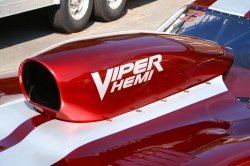 I've still managed to run either the Cuda or the Dart at every Mopar Nationals since July 1994, and I also play with my band Executive Relief on the Saturday night and have done every year since that inaugural 1994 meeting. We even cut short our honeymoon in 2003 to play this gig! I'm getting a bit old for it now. Eurodragster.com: When did you start to think about getting a Pro Mod, and what about Pro Mod attracted you? Chris Orthodoxou: From the first time I saw Geof Hauser, Al Packman and Tim Cook amongst others running in Pro Mod it was, for me, the ultimate class to run in. Unfortunately you can't now be competitive unless you have an unlimited budget. I originally intended to use the 'Cuda as the base car, but Angella wouldn't let me chop her up - I took her home in this car the first time we met! So I thought "Let's go up-to-date". The Viper GTS is such a brutal yet sexy-looking piece that the decision was easy. Also there is no other similar car in Europe. Although the new car is built to full Pro Mod spec, I will be running it in Super Pro or Top Sportsman for the time being. But you never know - all I need is a blown alky 526 Hemi and a Lenco. I think the new Top Sportsman class will be a show-stopper if it takes off. Heads-up qualifying then dial-in style eliminations - superb idea. Seven-second doorslammers made affordable and competitive. Eurodragster.com: Did you know exactly what you wanted and supplied precise requirements to the builders, or did you have a general idea of what you'd like and let them lead you?