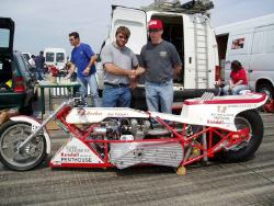 Eurodragster.com: What do your family and friends think about what you are doing? Dave Newbery: Everyone has been behind me since I announced I had bought this thing and happy that I am achieving a long term ambition. My parents still say "How much is this costing?" but still greatly support me. Since owning the bike I have found friends I never knew I had, but everyone is keen and helpful. Eurodragster.com: Who do you have for crew? Dave Newbery: Darren (Slug) Gorey, John Potter and Marie who looks after the food and water department. Eurodragster.com: Do you have any sponsors or anyone else you wish to thank? Dave Newbery: I have no official sponsors at this time, but I would like to express my thanks to Earl's for fuel and oil system fittings along with helpful advice; Mike Ross who has given time and resources as a professional photographer in taking these photographs of the bike - his web site is at www.thephotoshop.org; Dave Beck for helping to source some difficult parts; and Ray Debben for taking me seriously. Eurodragster.com: Thank you for your time Dave, good luck with the bike and