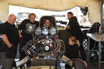 As to thoughts of driving a race car herself, suffice to say that the only time Ms. Roaf has taking a trip up the strip has been behind the wheel of a ’70 Pontiac Catalina that Rick and Carla bought as a holiday runabout in the USA some years back. They were so imbued with the vehicle purchased from a couple in Simi Valley, CA that it was decided to bring it to England at the end of the trip, and where over the course of time has been fully refurbished and retain to this day. It was at the Pod’s Flame & Thunder event in 2014 that the then 17-year-old, along with father and other crew members Dave and Christine Buckland, were each afforded the opportunity to drive the ol' Catalina on the strip as a kind of thank you for their assistance with renovating the Poncho, with Grace taking the third pass and carding a 14.2/104 timing ticket. Describing the track debut experience as “one of the best of my life” it would be fair to say that years at the strip have indeed been fulfilling for the young lady whose day job as a fabricator/welder/day-to-day management coordinator at historic racing car restoration specialist, G&A Fabrications in Walton-on-Thames, has also necessarily meant getting her delicate digits grubby; but hey, that’s something that plainly goes with the territory, and more so after her move to becoming an apprentice clutch technician on The Undertaker nitro Funny Car. “It was in January of 2020 that I received a Facebook message out of the blue from Dave Bryant” (longtime crew chief/co-owner on the flopper formerly campaigned by Gordon Smith under the Shockwave moniker) Grace said. “He was looking for a girl whom he could teach the workings of the clutch pack, assisting his partner, Marie Mills, with the view to later becoming primarily responsible for this (facet) of between rounds maintenance.” Dave has had ladies such as Sarah Senderski working on the Shockwave in seasons past, and as Marie is now actively campaigning an Altered in Sportsman ranks, it was with the suggestion of a couple of knowledgeable buddies that he duly contacted Grace to see whether she would be interested in joining the team headed by driver Steve Ashdown, proprietor of Maidstone, Kent’s, Banks Nightclub. Needless to say, with an opportunity to add a further skillset to her drag racing curriculum vitae, the answer was a positive ‘yes please’. This was followed up the following month by a visit to the team headquarters close by the Pod in Airfield Road where an introduction to the crew was made and the job explained in detail. A quick learner, Grace made copious notes as every aspect was explained and ’twas not long before she began to appreciate the critical role that clutch setup and servicing plays in the operation of a ‘Big Show’ Funny Car.