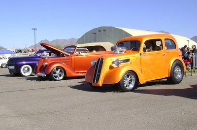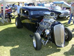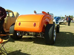 Hot Rods and Hot Boats Words and pictures by Shaun Saunders and Jeff Rainbird Click on any picture for large version, and scroll down for additional photographs Shaun Saunders writes: Westworld Fairgrounds in Scottsdale, Arizona hosted the annual Goodguys Hot Rod Show in December 2009. It was a very well-attended event with a great selection of cars ranging from daily drivers to $200,000 pro-built show cars, the latter arriving in enclosed trailers from around the country - many drivers travel vast distances to receive an award for their efforts. A perfect 80 degree weekend added to the charm of the show. I would estimate that a thousand cars were present, including Tri Chevys, Camaros and Caddys along with '32 and '34 rods, my favourites being a blown BBC '34 driven on open zoomies and a beautiful blown orange candy '68 Camaro. I also spotted a few Pops and a BBC-powered '32 roadster with a chrome Jag rear end, glad to see a British influence at such an event. Jeff Rainbird writes: The engine and hull carnage at Saturday's first round of qualfying for this year's IHBA Finals at Firebird left the Top Fuel Hydro second round down to two, and a few other teams with major bills if they are to compete next year. Watching the Toxic Rocket go 263 mph in 4.6 seconds is a memory never to be forgotten. Hot Licks mixed them up with valve bounce as the props unloaded on the launch filling the blower which then exploded tearing the whole top half of the engine apart. The second Alcohol Hydro runs had one boat dig in the left pickle on the gear shift at the 350' mark, the boat then proceeded to stand on its nose go into a total self destruct. The sunken wreckage was towed to the side clear of the track and the driver was OK as he was thrown clear in the safety capsule. This was backed up by the Pro Mod Hydros running to a 7.00 index and they do, our index racers should have a look ! Then there are all the Sportsman guys and the Alcohol Flats (the Fuel Altereds). Is Drag Boat racing better? Here are some facts. If the track's wet, they race. If there is an oildown, they race. 1320 feet and they don't need an army to get fired or a burnout, just a track clear of wreckage. Having raced Offshore Power Boats and won, gone over backwards at 90+ mph, got the K7 badge for 100+ mph in an Offshore Power Boat on