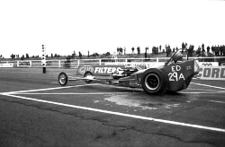 John Whitmore: I ran the car at all meetings that took place. Santa Pod Raceway was the best track although we went to Blackbushe, Snetterton, Silverstone, Wroughton, Radlett and so on. I met my wife Terry at Blackbushe in 1973. Terry Whitmore: I lived in Reading, not too far from Blackbushe. I had a four-year-old daughter Joanne who said without pronouncing the Ts "Are you going for some water, John Whitmore?" which has stuck through the years. Our first date was her fifth birthday party! We had three children later, Craig, Ian and Julie, and have two grandchildren. We also had a dog at that time, which we called Leyland. Eurodragster.com: You went to Sweden with the rear engined car? John Whitmore: I went to Sweden three times. On one visit, in the final race, I didn't think I had won but I was told that I had. I then assumed that my opponent had redlit. At the presentation I was treated like royalty and the crowds were cheering. Terry had to tow the dragster down strip with me in it, then I had to go to the top of the huge grandstand to be presented with the trophy along with a huge bouquet of flowers. Later that afternoon my opponent came over to me and said that apparently there had been a mistake and I had not won that race at all! The winner (my opponent) was a very pleasant gentleman and insisted Terry kept the bouquet of flowers. We also went to Zandvoort which went well, we won there. We also went to Germany, had a shower of rain and they cancelled the meeting.