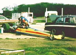 Eurodragster.com: What other special memories do you have? Terry Whitmore: John never redlit during his whole drag racing career. Also, on one occasion John had to push his dragster nearly the quarter mile at Santa Pod raceway, because his opponent had broken down before the start of the race, then John's dragster broke down after taking the start, in the bye run. In order to win the race, John had to complete the quarter mile with his dragster to the finish line. The crowds were cheering John all the way. John was absolutely exhausted by the end. There was such a fantastic atmosphere where spectators were bringing John cans of beer and applauding his triumph! John Whitmore: It got harder and harder to push the dragster, as the clutch started sticking as I got further down the track. Terry Whitmore: Also, our eldest son (Craig) who was a mere baby, used to infections frequently, until our visit to Mantorp in Sweden. There they had high fences around the pits, so only racing teams could get in there. A lot of John's tools were all over the place on the ground and John had drained the oil out of the dragster into an empty oil container. This oil was contaminated with nitro and Craig had got a large long screwdriver, dipped it into the old oil and sat sucking it. The spectators were trying to yell over and warn us what Craig was doing. However, although Craig had had a throat infection when we arrived at Mantorp, he was cured by the time we left, and did not have any more infections for some weeks. The infections became less frequent as time went on and Craig grew into a healthy man. On another occasion when we were at Santa Pod, John's dragster was in bits, and racing had stopped. One racer came up to us after some time and said "Did you know your boy has been sticking pebbles down the engine?". We didn't, but, fortunately the cylinder heads were still off, so John was able to remove all the pebbles! Craig also had a habit of taking the dust caps off the front wheels, which resulted in the tyres deflating with the centrifugal force, resulting in John having to pull the chute to stop quickly.