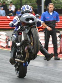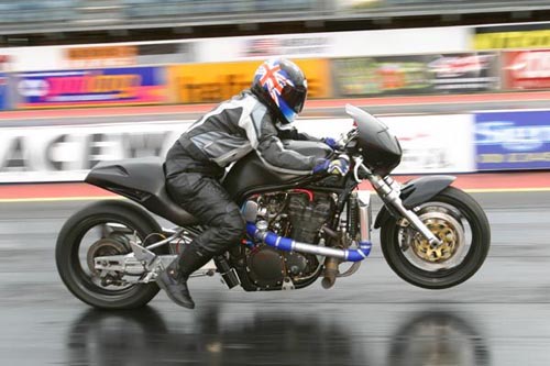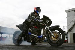 Rat: Well first there was the turbo, with slightly lengthened swinging arm, then there was the gas, with even longer swinging arm and frame modification, then we wound up the turbo, then more gas - I think you get the picture. It went to visit Uncle Richard and Auntie Squirby last winter for a nice little overhaul, now it's even longer and lower with a lightweight body kit (deduct about 50lb from question 10!) Eurodragster: Best elapsed time / terminal speed? Rat: 8.66/166 Eurodragster: Who is your current crew? Rat: Anyone who cares enough and Ady from PEST engineering in Gloucester. Eurodragster: What plans do you have for the future? Rat: To be the quickest Bandit in Europe - what? Oh yeah, so it is (sorry Kev)! OK, the quickest Bandit in the world would be nice but I think Brock is a little way ahead of me yet. I'd also like to be the quickest woman in Super Street in this country. Does anyone know what I need to beat (I think the 8.66 gives you that one Rat - Features Ed)? The quickest woman on the planet is tempting but I think Scary and Helen are ever so slightly ahead of the game for that one. Also, you need slicks and bars for that, and we all know what bars are for don't we boys and girls?