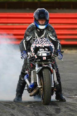 Exclusive Feature on L Plate Racing ![]() For this feature we head to the class where the only thing bars are good for is drinking in, Super Street Bike. The spotlight falling this time on L Plate Racing and the only female rider to compete regularly in the class, Rachel 'Rat' Pattison. Rachel came up through the ranks of 9.90 Bike, and moved to Super Street Bike two seasons ago when she got fed up with slowing down to try and stay within the 9.90 index! Over the past two seasons she has constantly been evolving her bike to the point where she now holds the unofficial title of 'Quickest Bandit in Europe' with an 8.66/166 pass. Thanks to Rat for taking the time to complete this feature for us, and for not plugging her company too much! Eurodragster: Tell us a little about yourself away from the track? Rat: I own and run a motorcycle training school in Swindon, Abbey Rider Training, yep, that's Abbey Rider Training, 01793 705905. I live in a new mobile home which according to my team mate Beany Boy (Paul Newman - Features Ed), makes me a posh pikey! Beer, fags, knitting, calligraphy, you know - the usual stuff! Did I mention Abbey Rider Training? Eurodragster: When did you first go to a drag race? Rat: About eight or ten years ago at the Bulldog Bash. First time at Pod was about 1997 I think, to watch the Thunderball. Eurodragster: When did you first take part in a drag race? Rat: In 1998 I took my old GS850 rat bike up the strip at the Bulldog. As I remember it just about made it to the end, and only just got me home too! In 1999 I took my brand new Bandit to the Bulldog and came third in the Japanese Lady class (that's the bike that's a Jap - not me)! In 2000 I went to the Bulldog, on the Bandit again, my sole intention this time was to win. Guess what - the trophy still has pride of place on my desk, at Abbey Rider Training (did I mention that)?