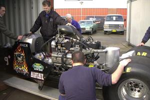can buy a trailer out in the USA, if not then we will put the dragster and spares in a container. The car will arrive here at the end of