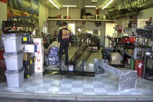 Now that the car is in the workshop, the MPM Top Fuel team will be checking their inventory